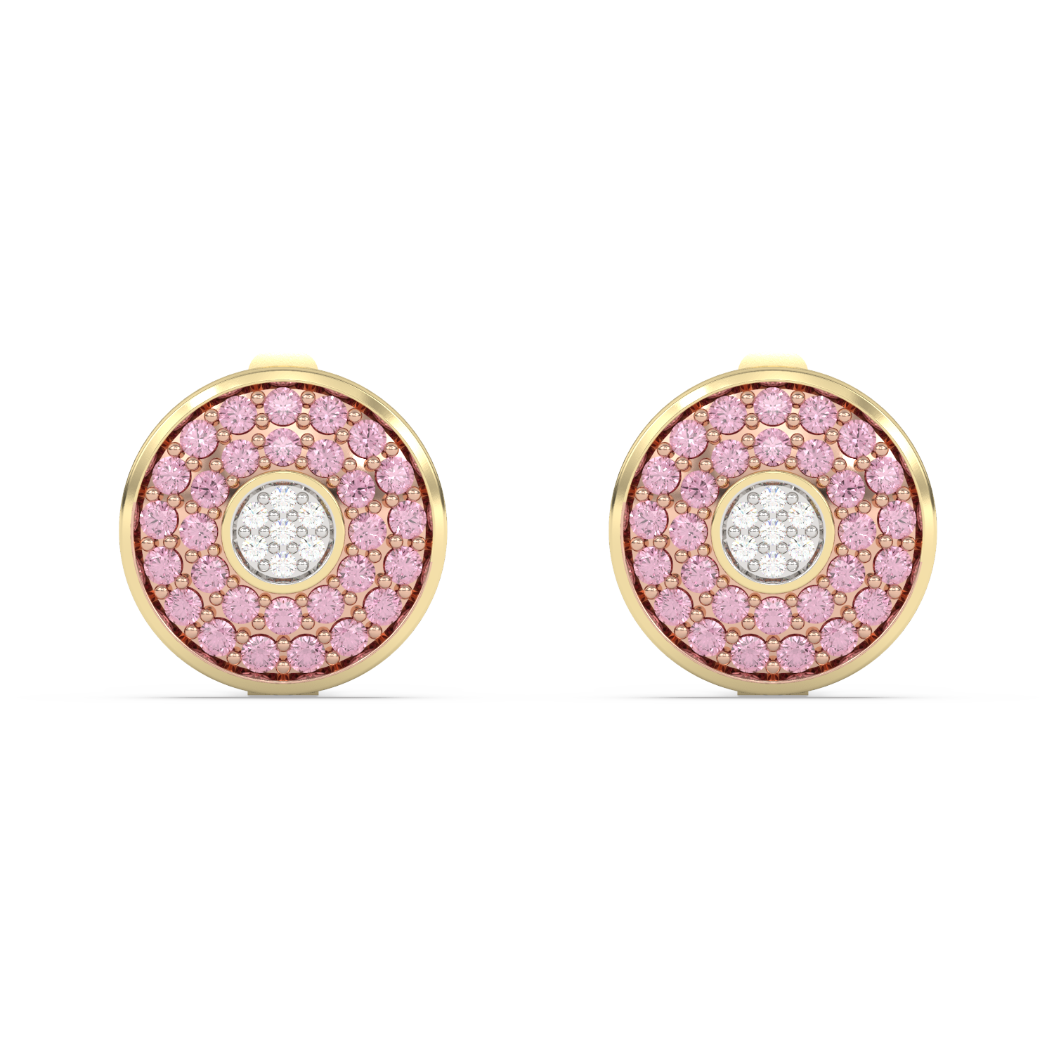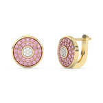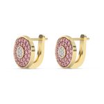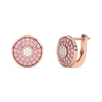 Eleganckie kolczyki z angielskim zapięciem i brylantami w centum, otoczonymi licznymi różowymi szafirami.