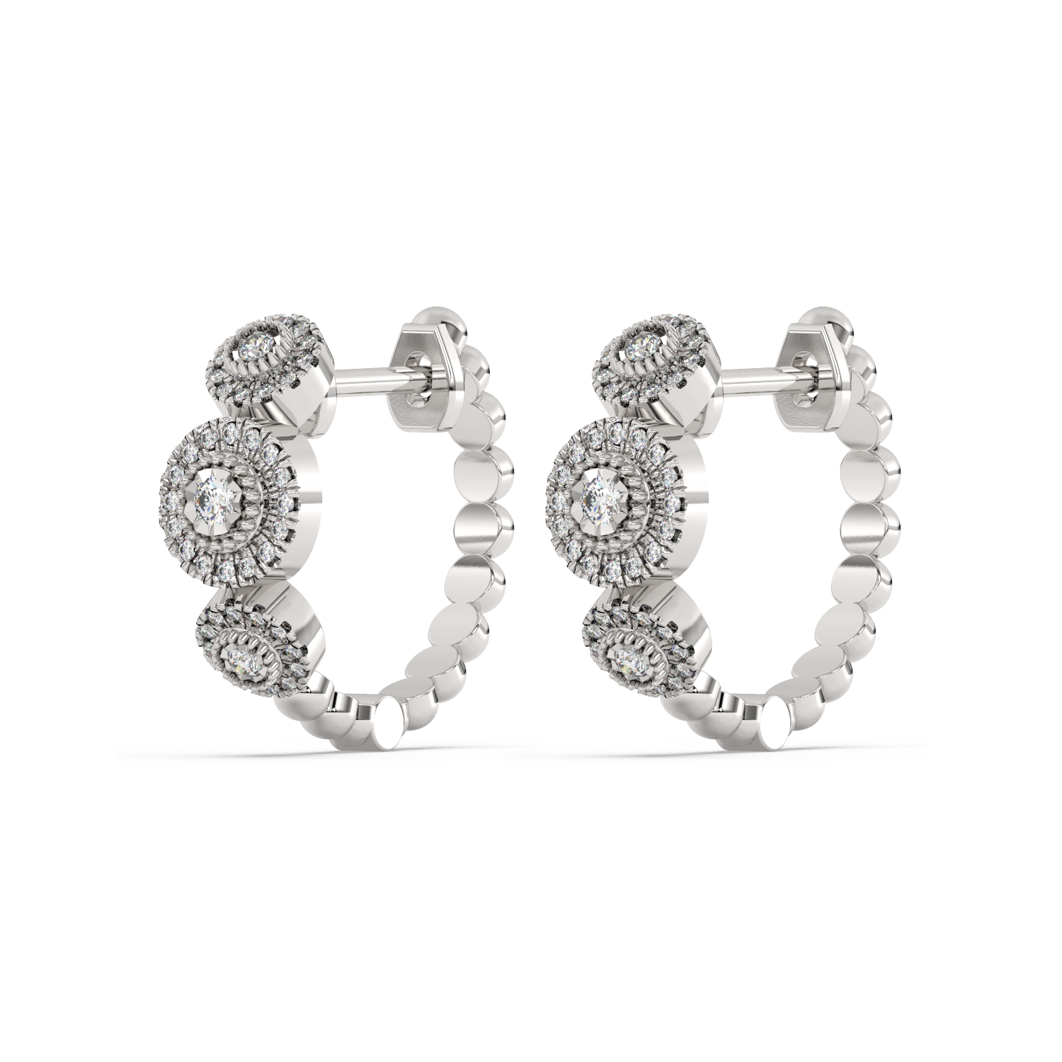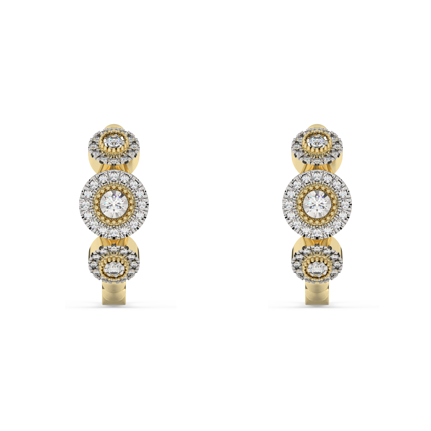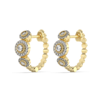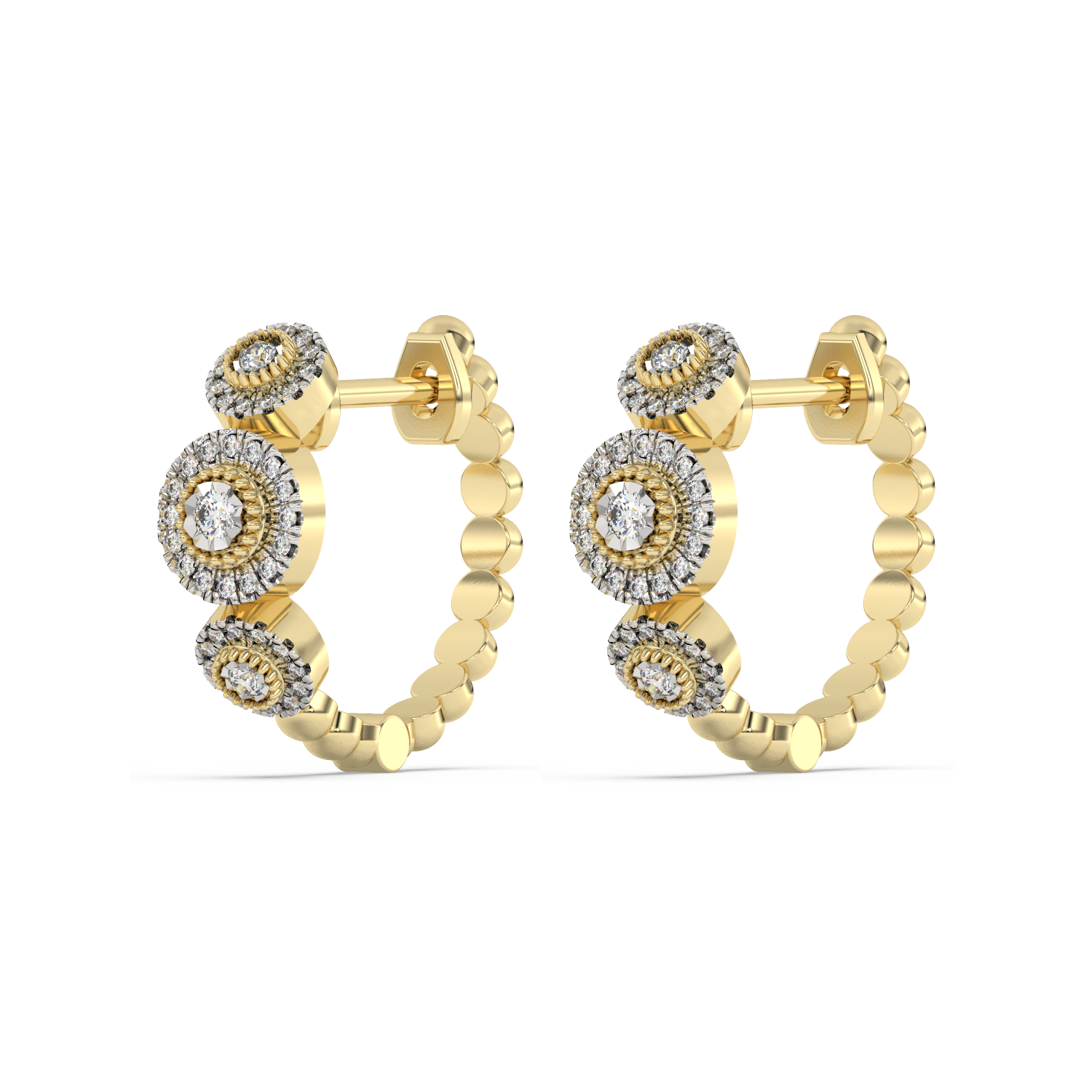 Ponadczasowe złote kolczyki z brylantami oraz koralikowym wykończeniem.