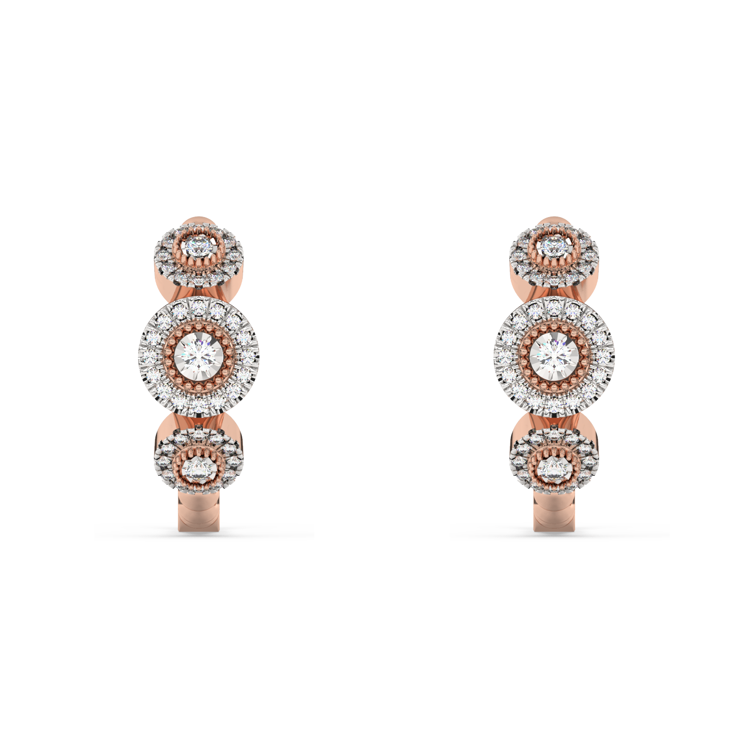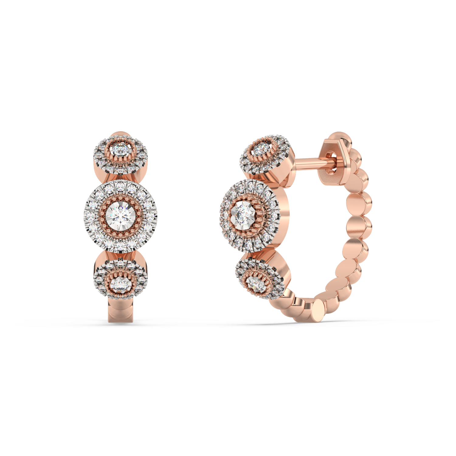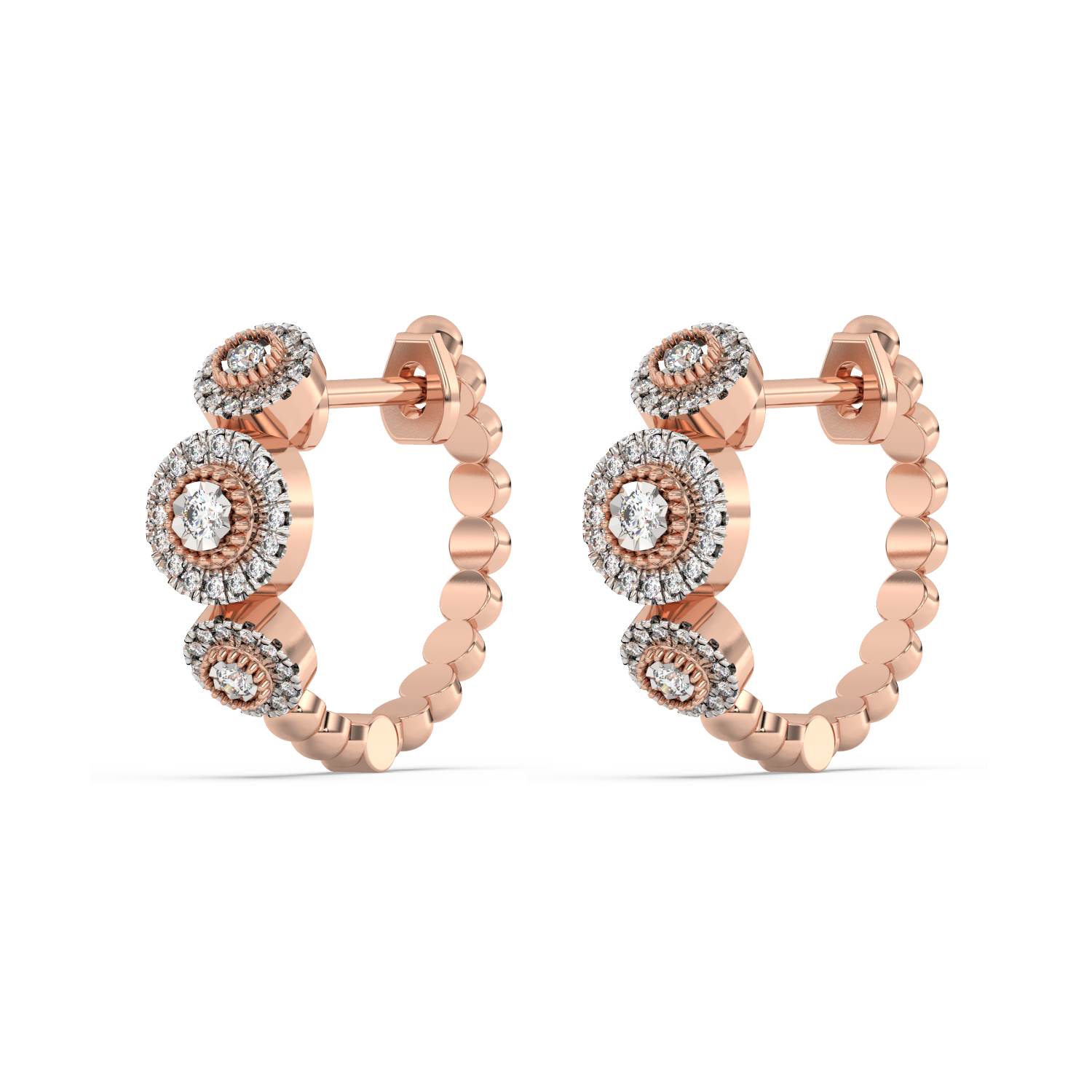 Ponadczasowe złote kolczyki z brylantami oraz koralikowym wykończeniem.