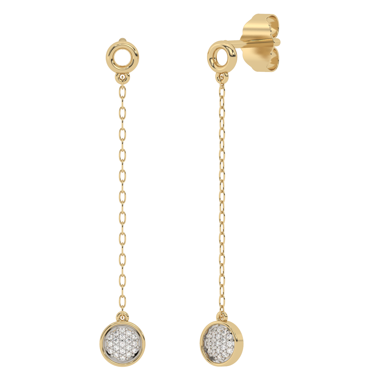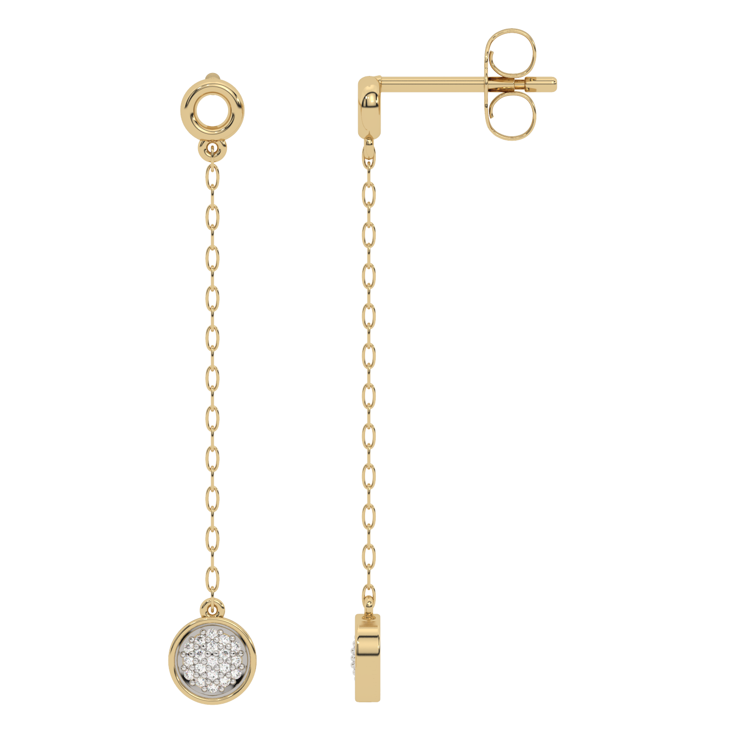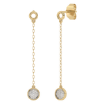 Piękne złote kolczyki wiszące z delikatnym łańcuszkiem i subtelnym akcentem z brylantów. Biżuteria, która doda Ci świeżości i elegancji. Idealne zarówno na co dzień, jak i na specjalne okazje.