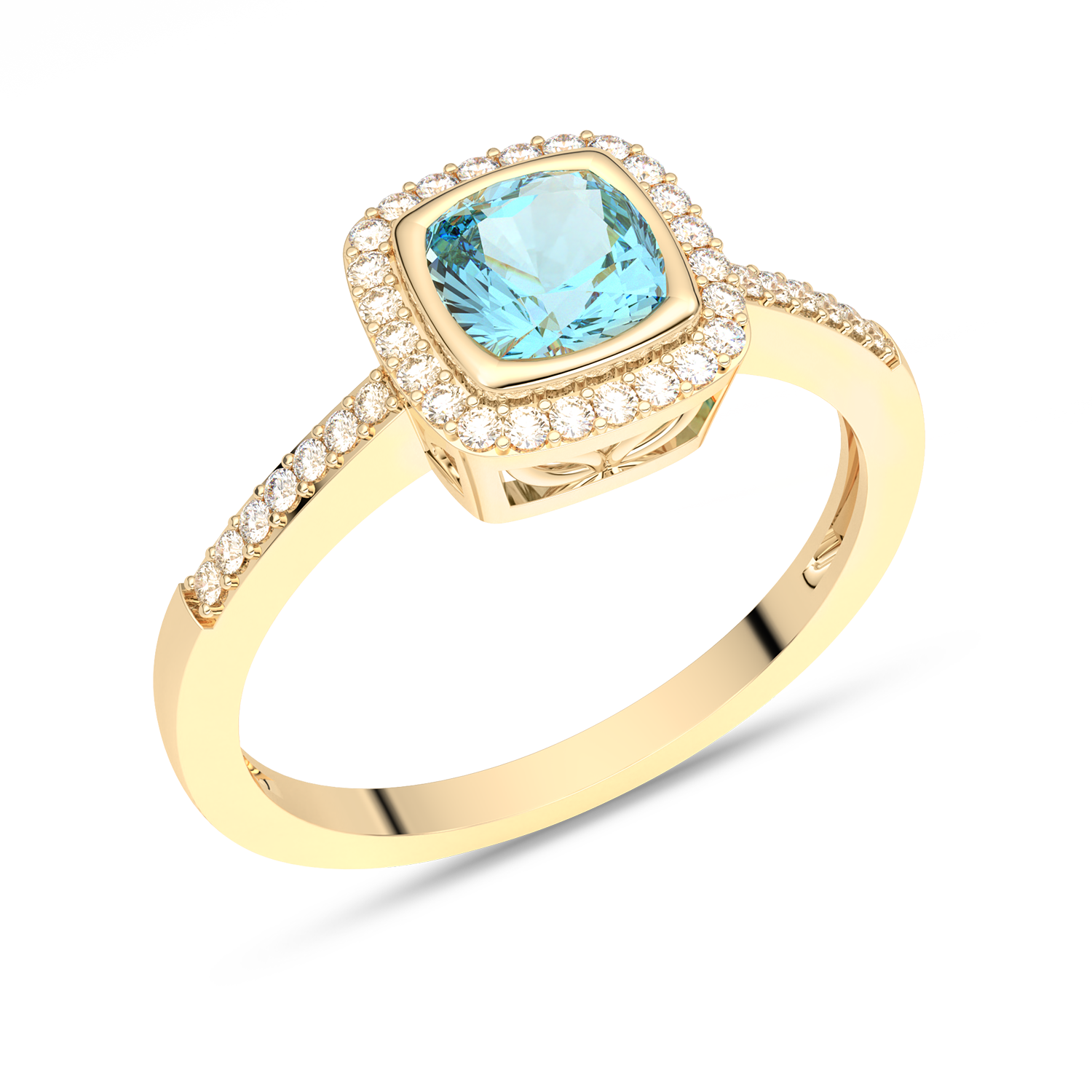 Pierścionek z Akwamarynem i Brylantami - Venetia Jewels - 14K złoto z brylantami