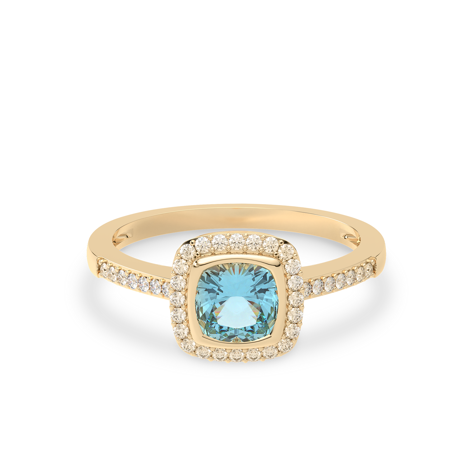 – 1 akwamaryn o poduszkowym szlifie – 0,64ct.