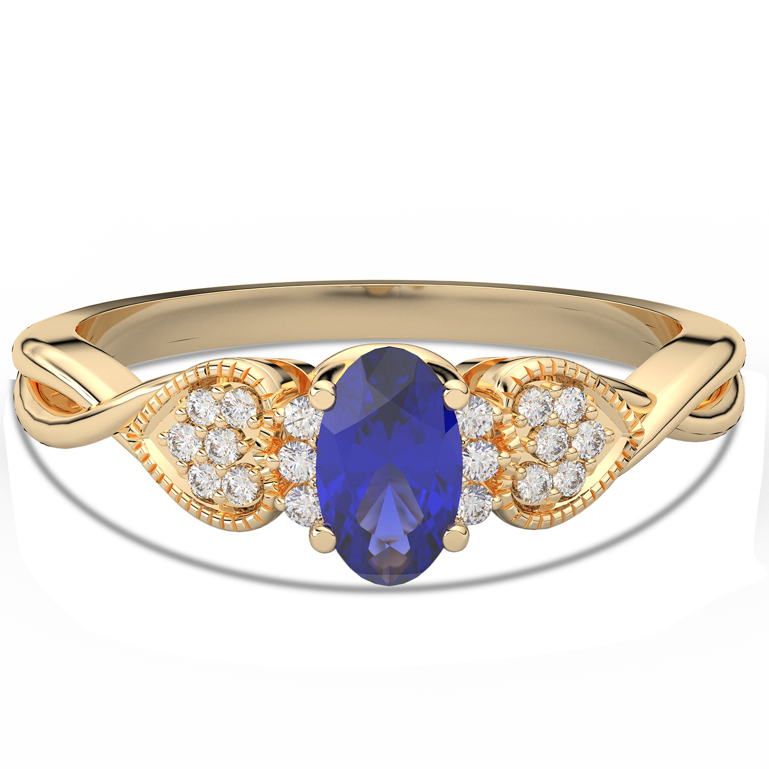Pierścionek z Brylantowymi Sercami i Szafirem