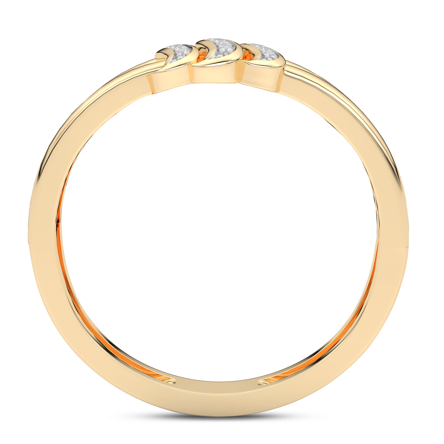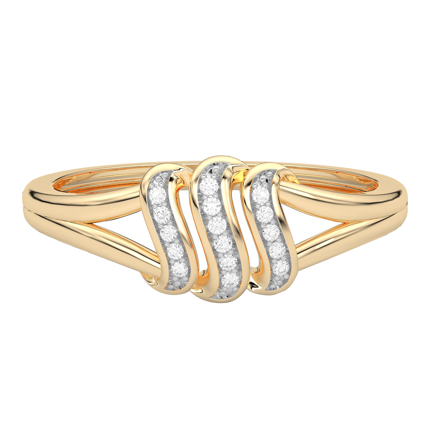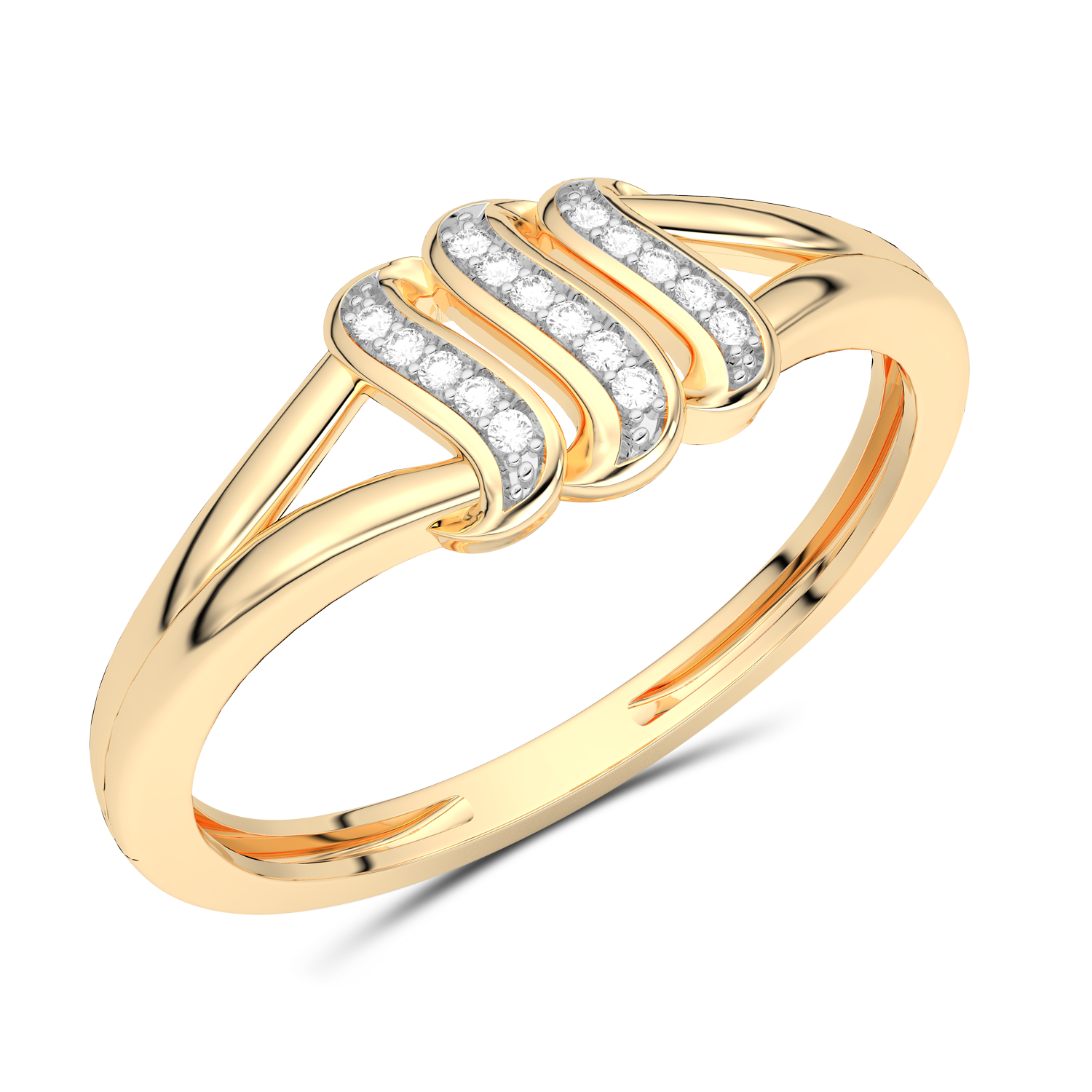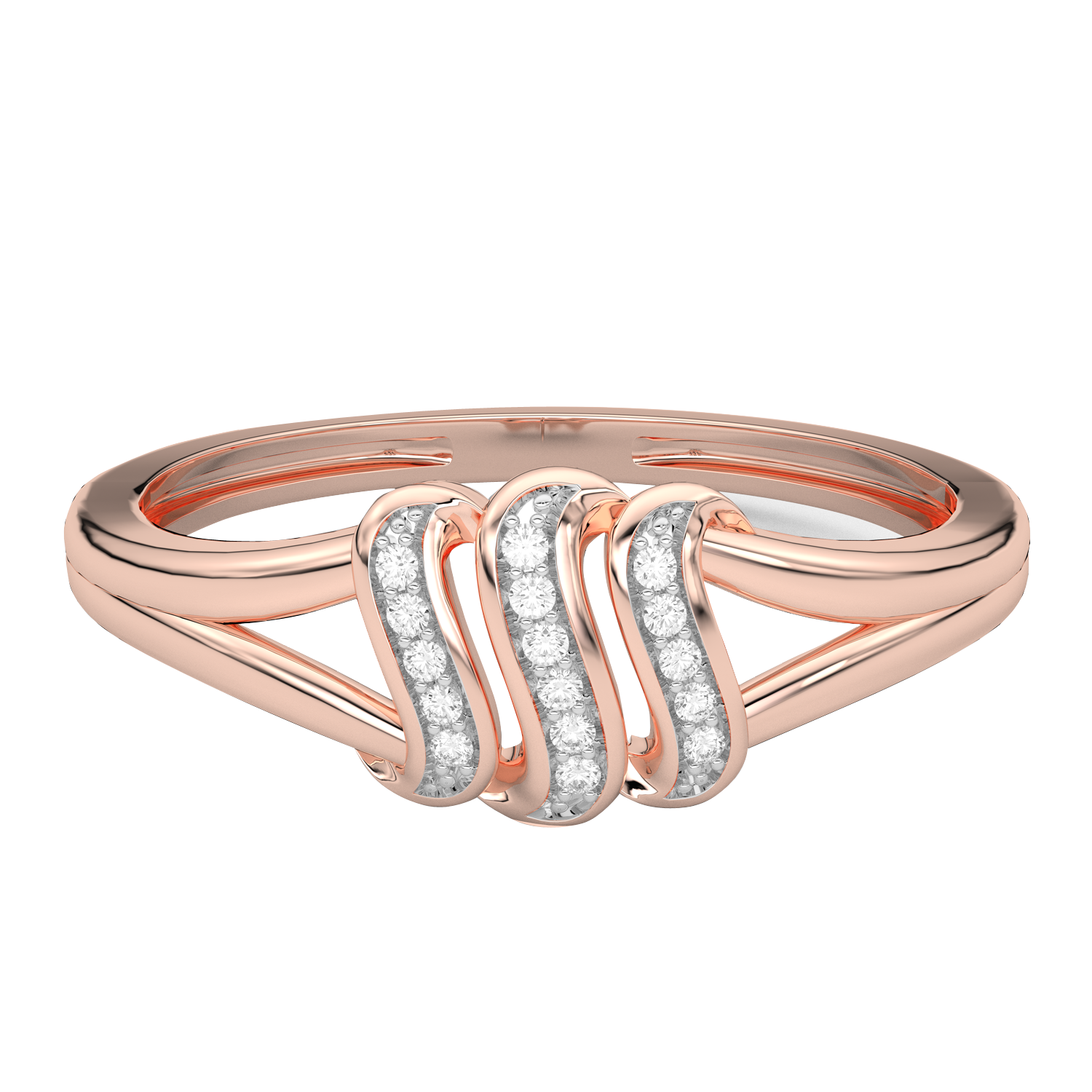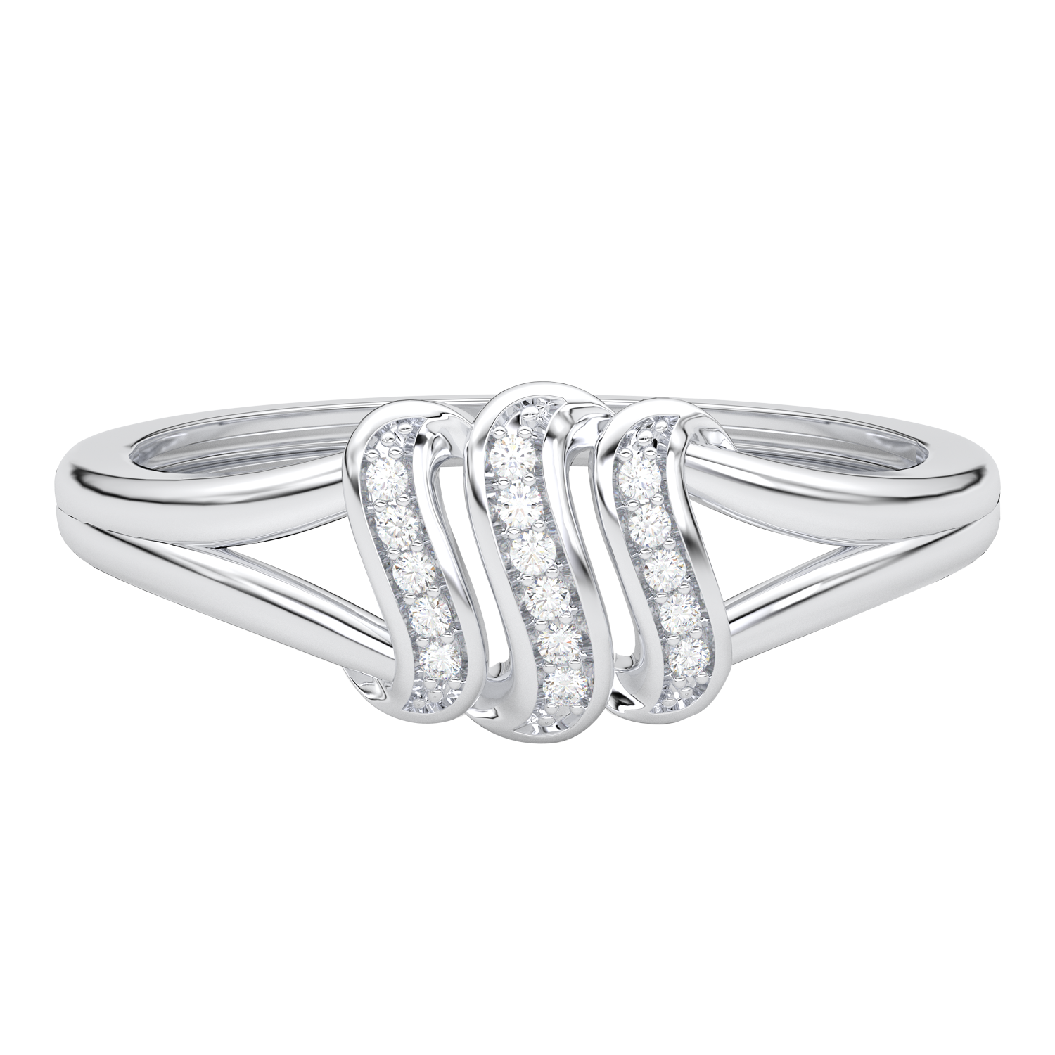 Piękny pierścionek z trzema brylantowymi falami w centralnej części obrączki.