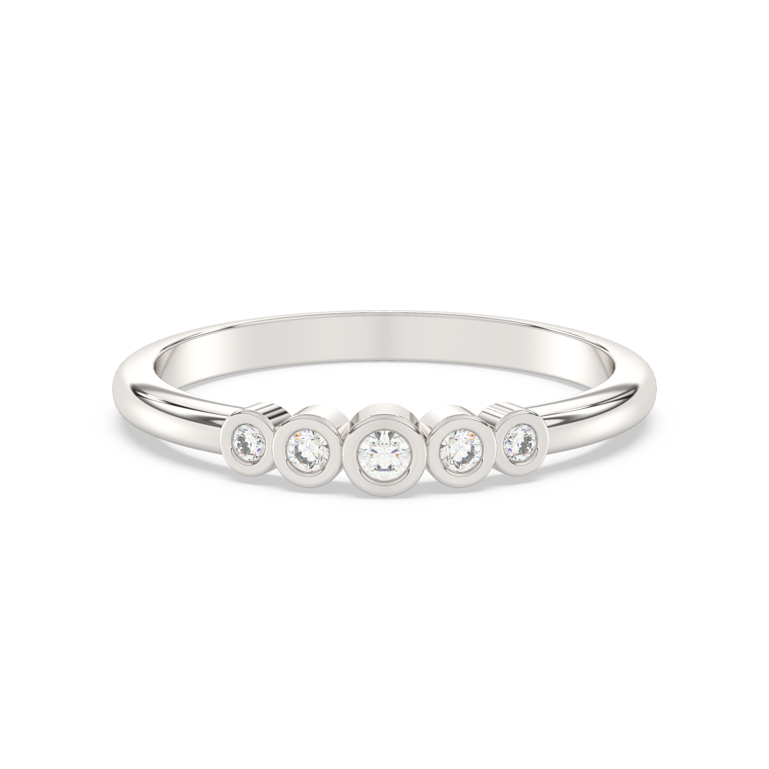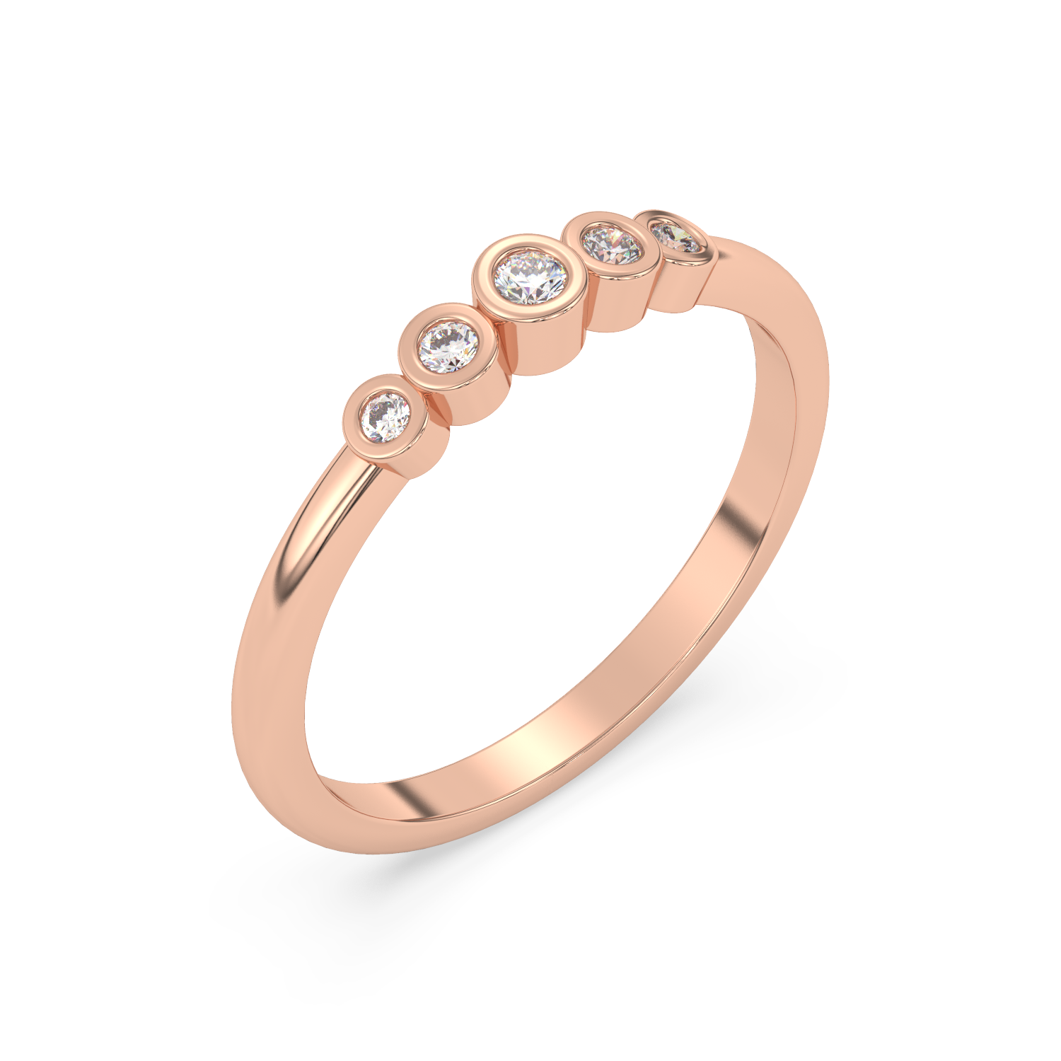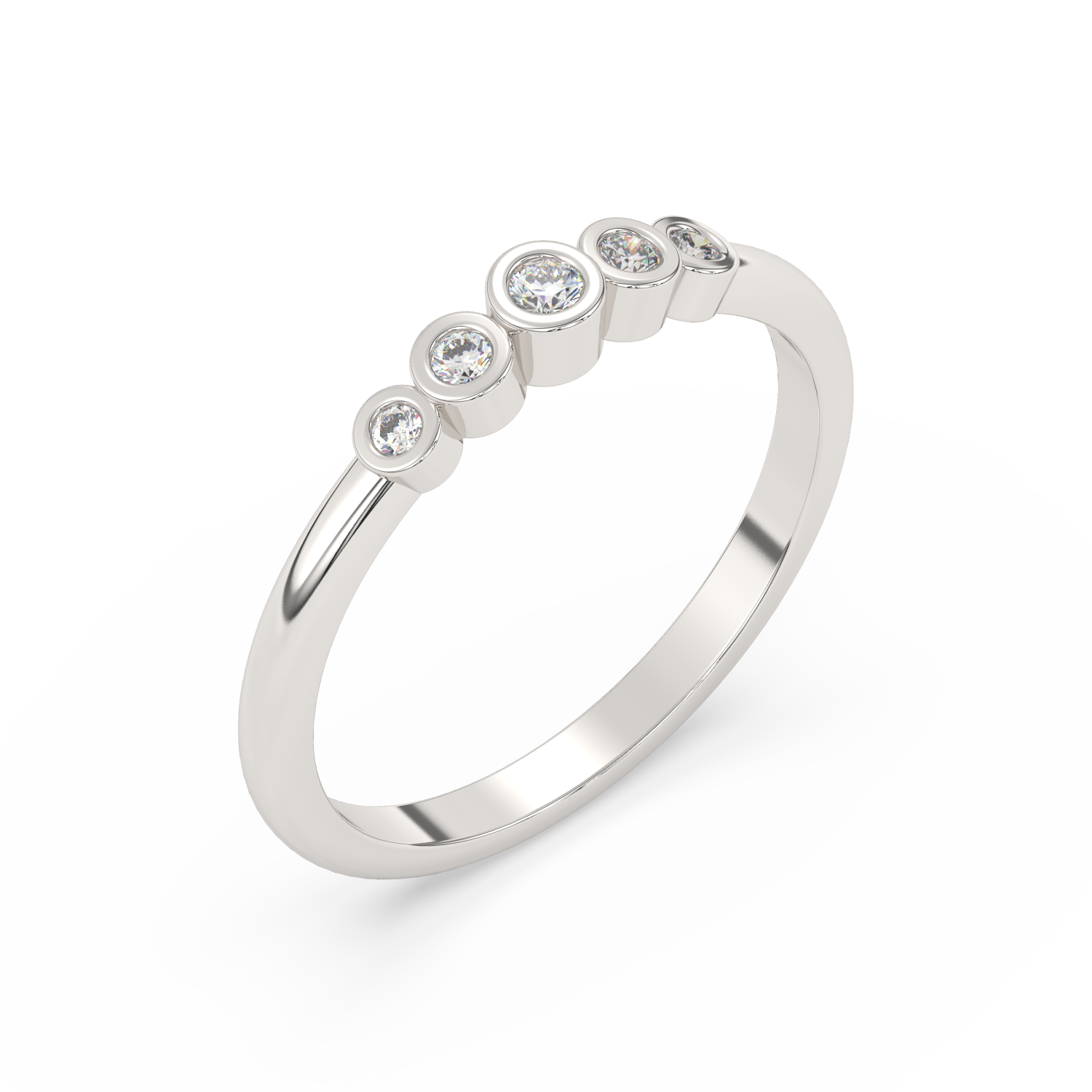 Elegancki pierścionek z pięcioma brylantami w pełnej oprawie.