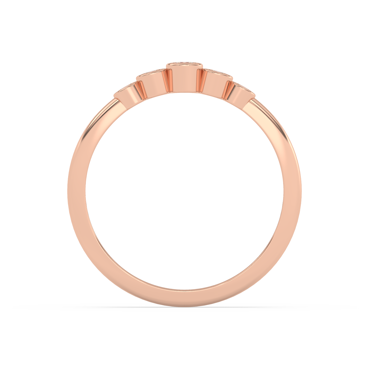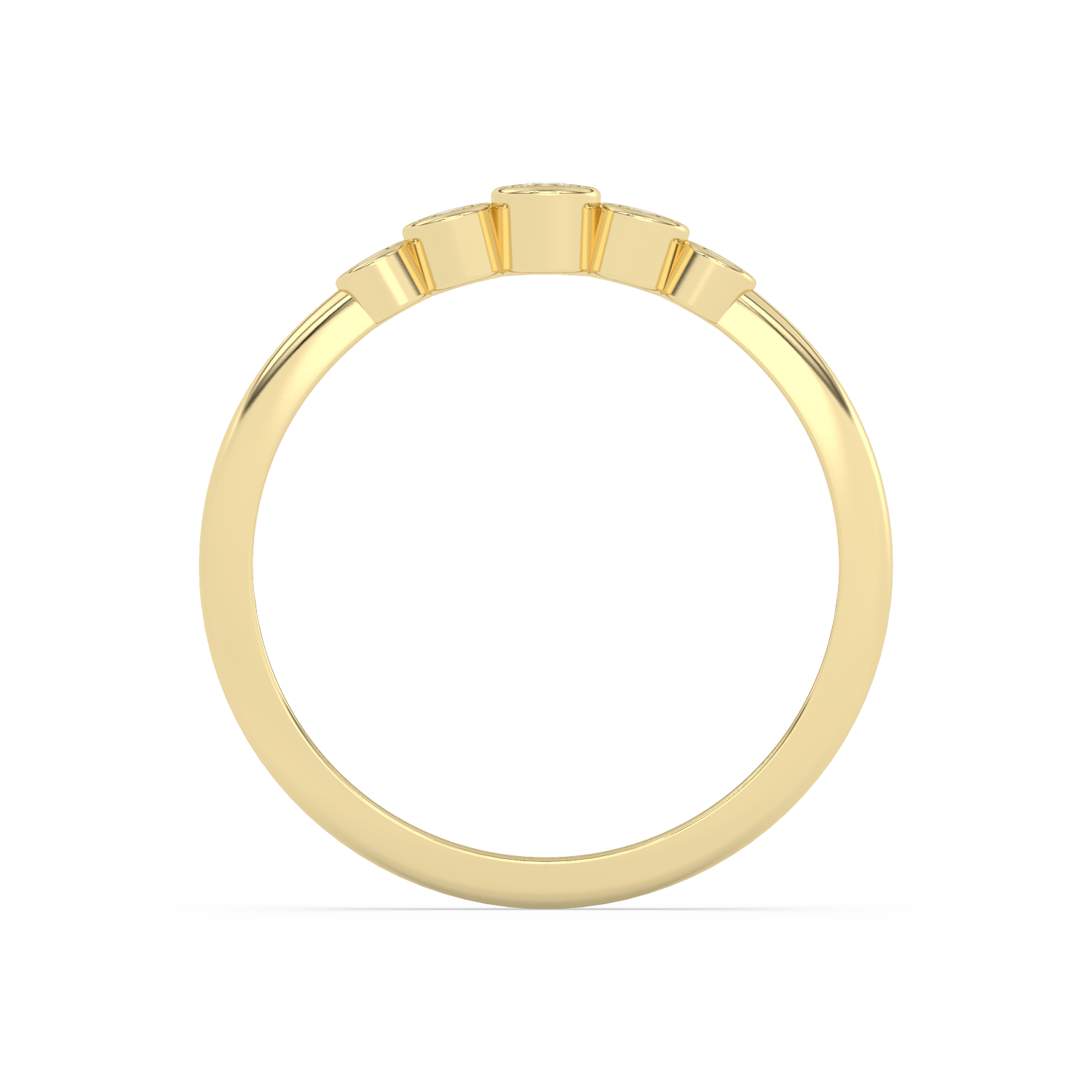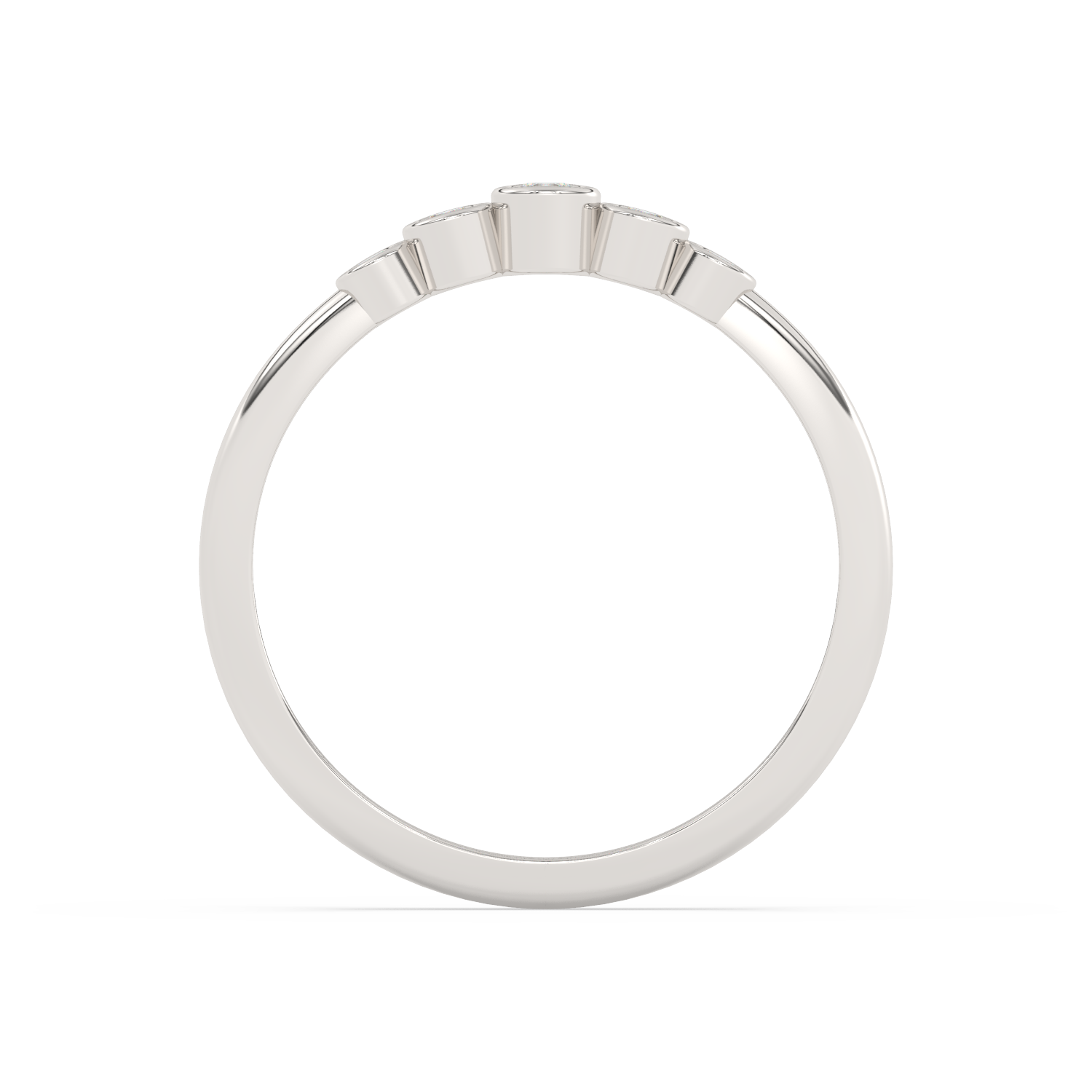 Elegancki pierścionek z pięcioma brylantami w pełnej oprawie.
