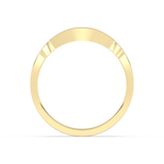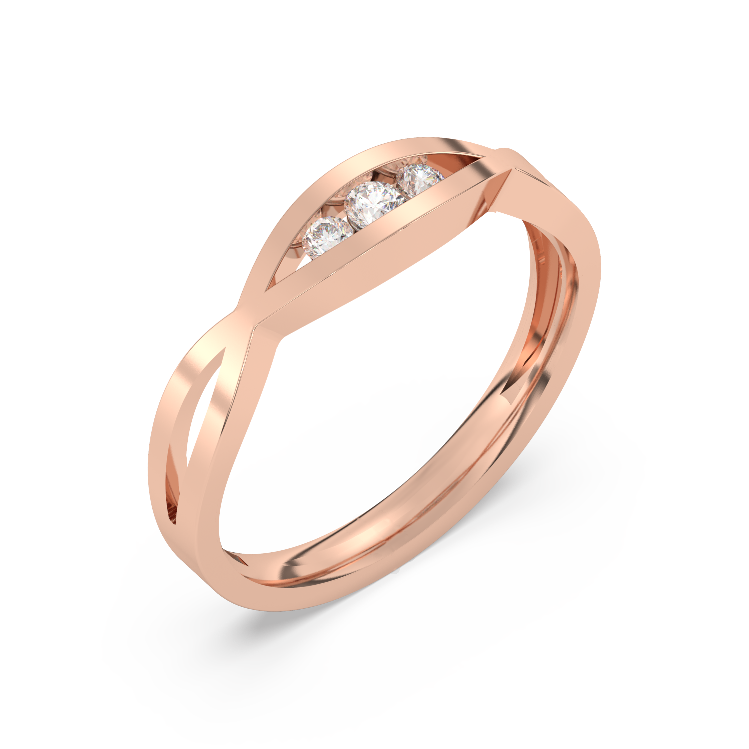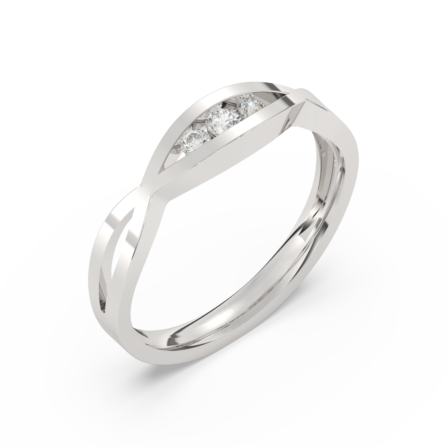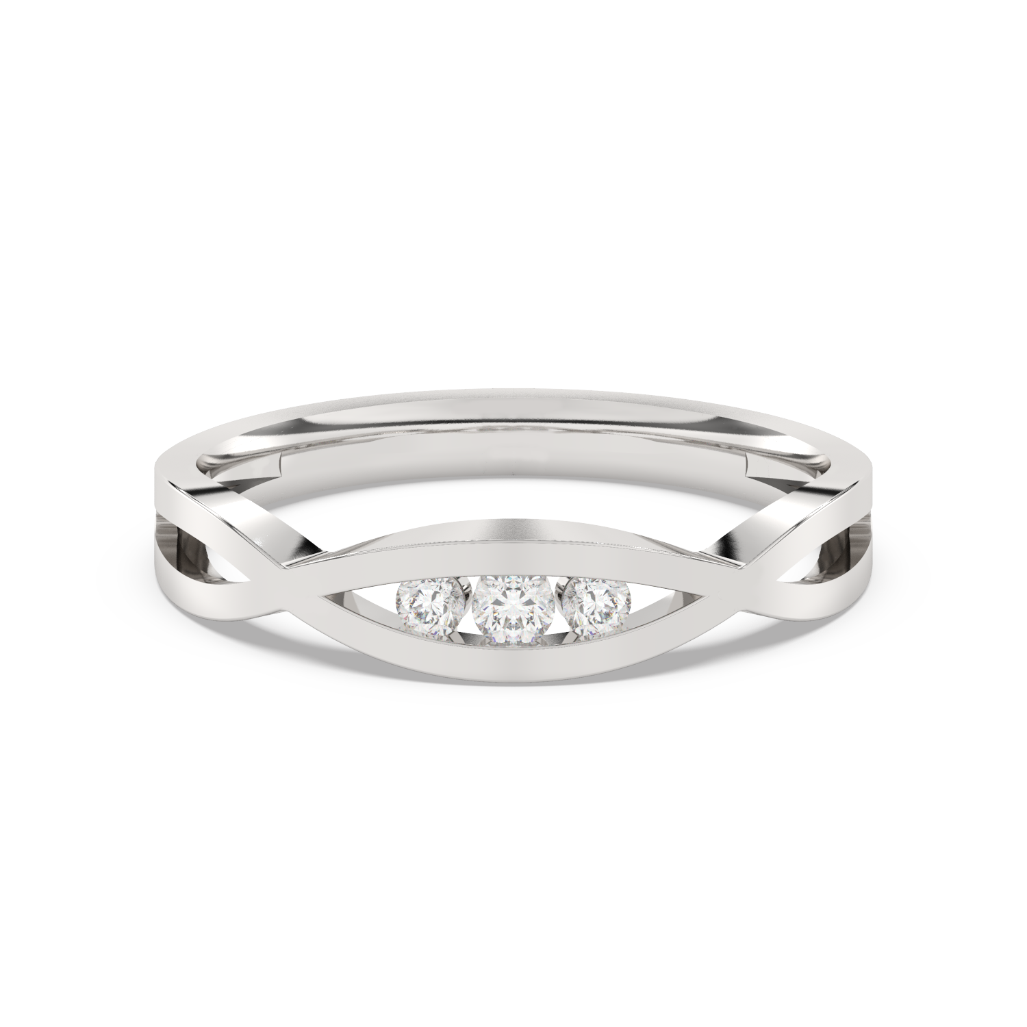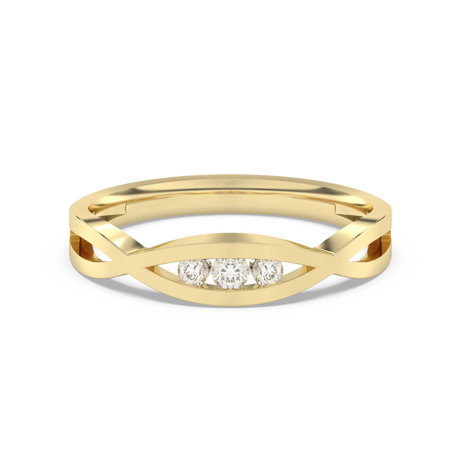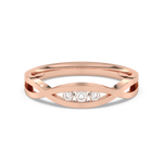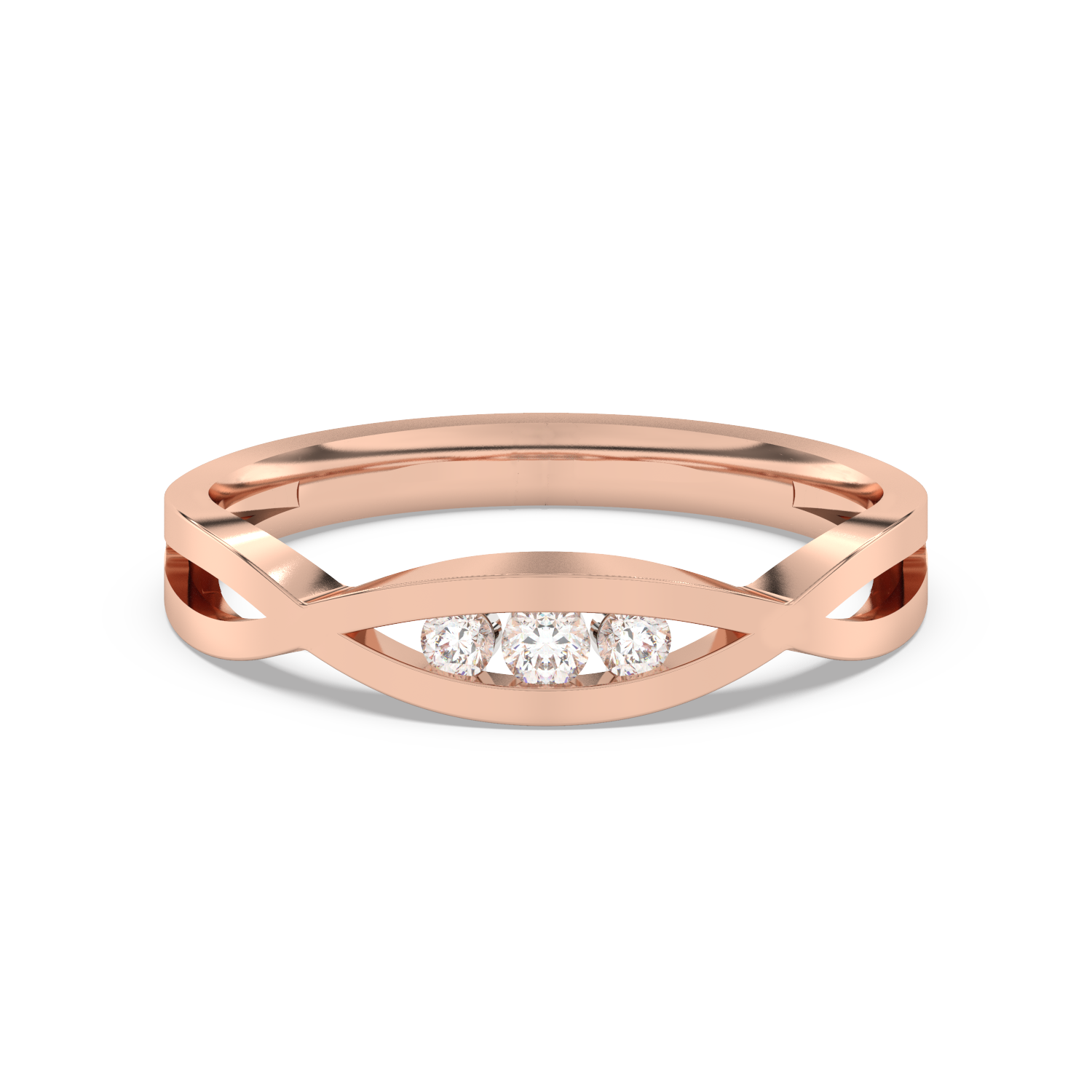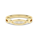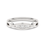 Piękny pierścionek z wzorem fali z trzema brylantami w centrum.