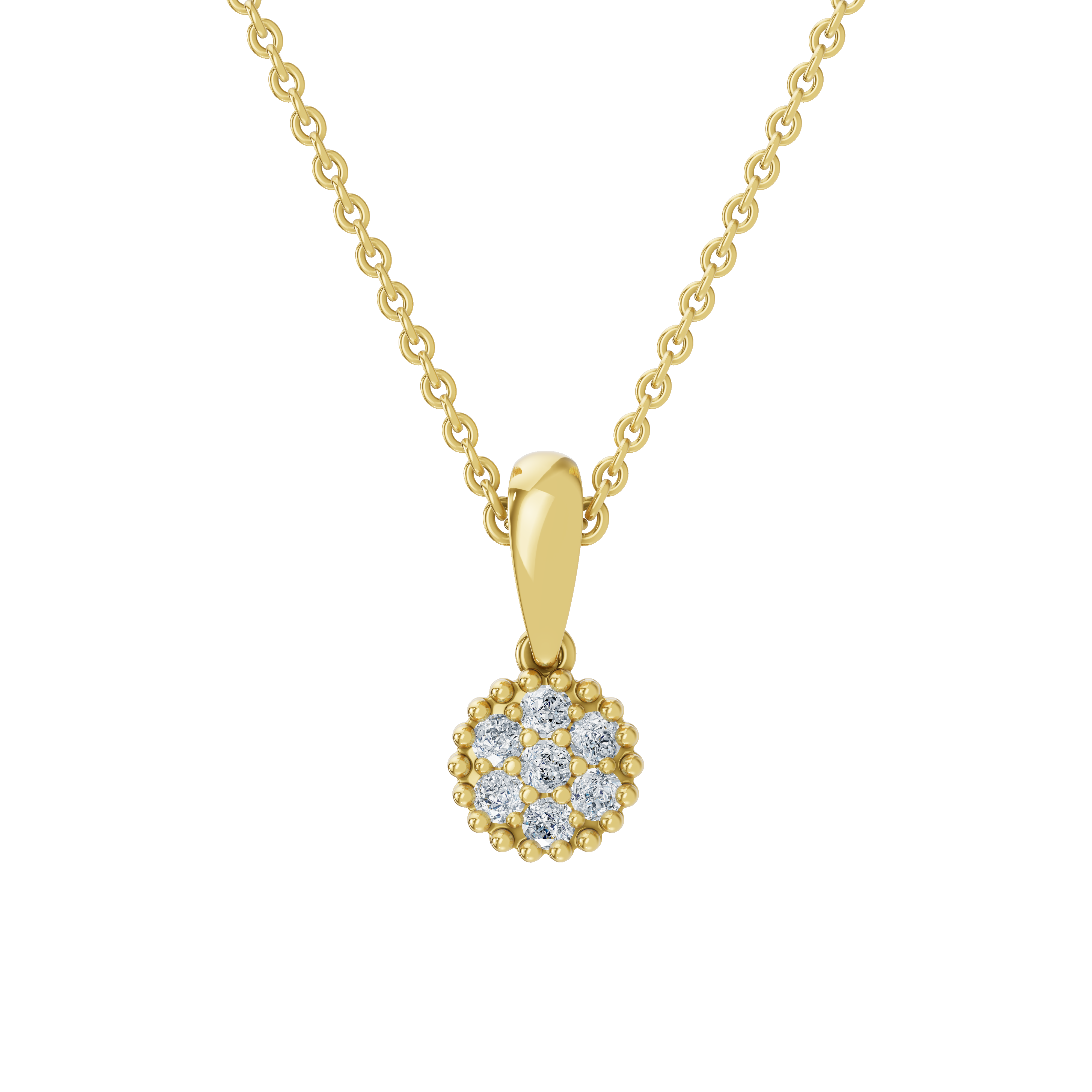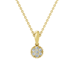 Delikatna i elegancka złota zawieszka, która zachwyca klasycznym motywem okrągłej rozety z brylantów. Centralna kompozycja emanuje subtelnym blaskiem, a dekoracyjne złote kuleczki wokół kamieni dodają biżuterii wyjątkowego uroku i szlachetnego charakteru. Harmonijne proporcje sprawiają, że zawieszka pięknie prezentuje się na dekolcie, stanowiąc ponadczasowy dodatek zarówno do codziennych, jak i bardziej eleganckich stylizacji. Łańcuszki sprzedawane oddzielnie.