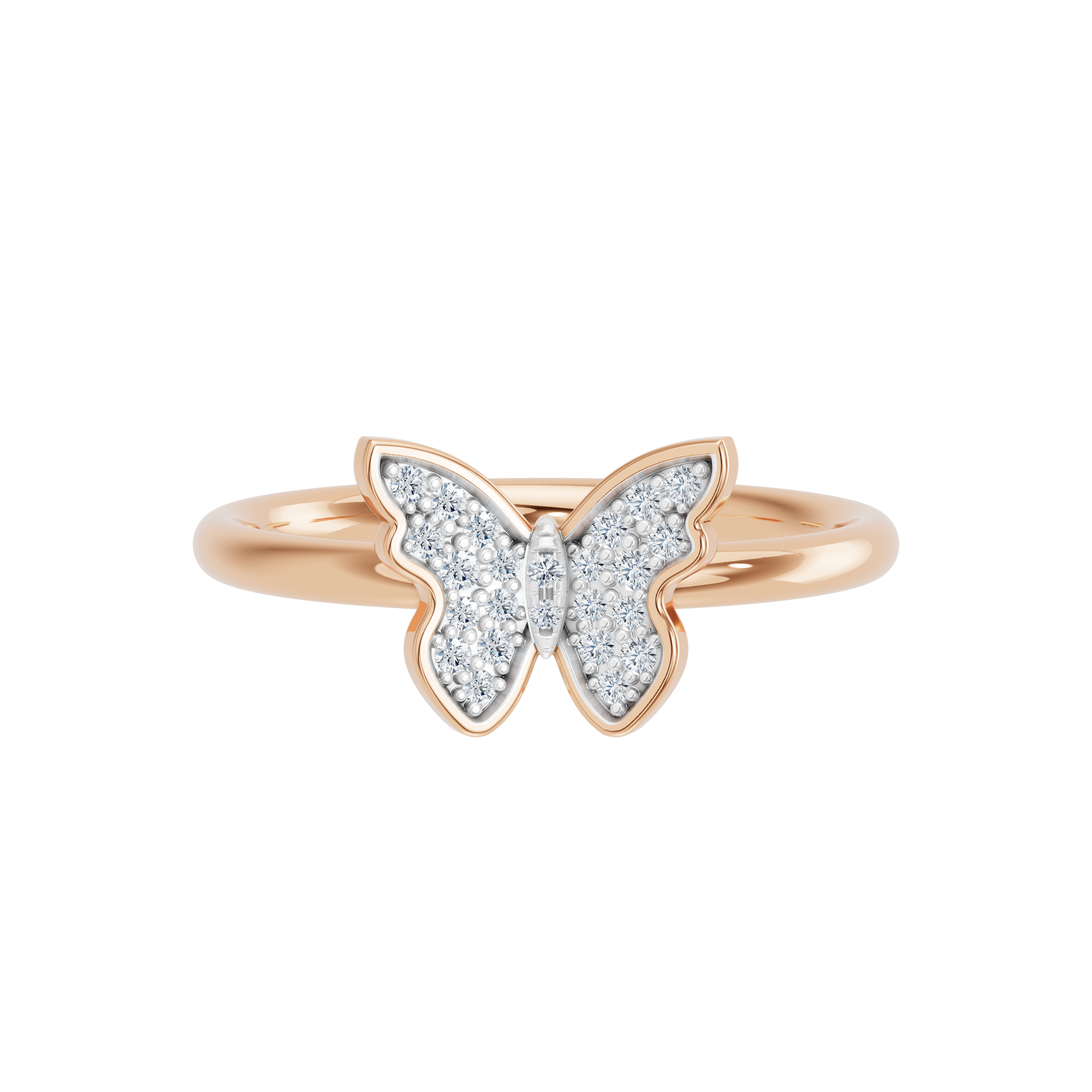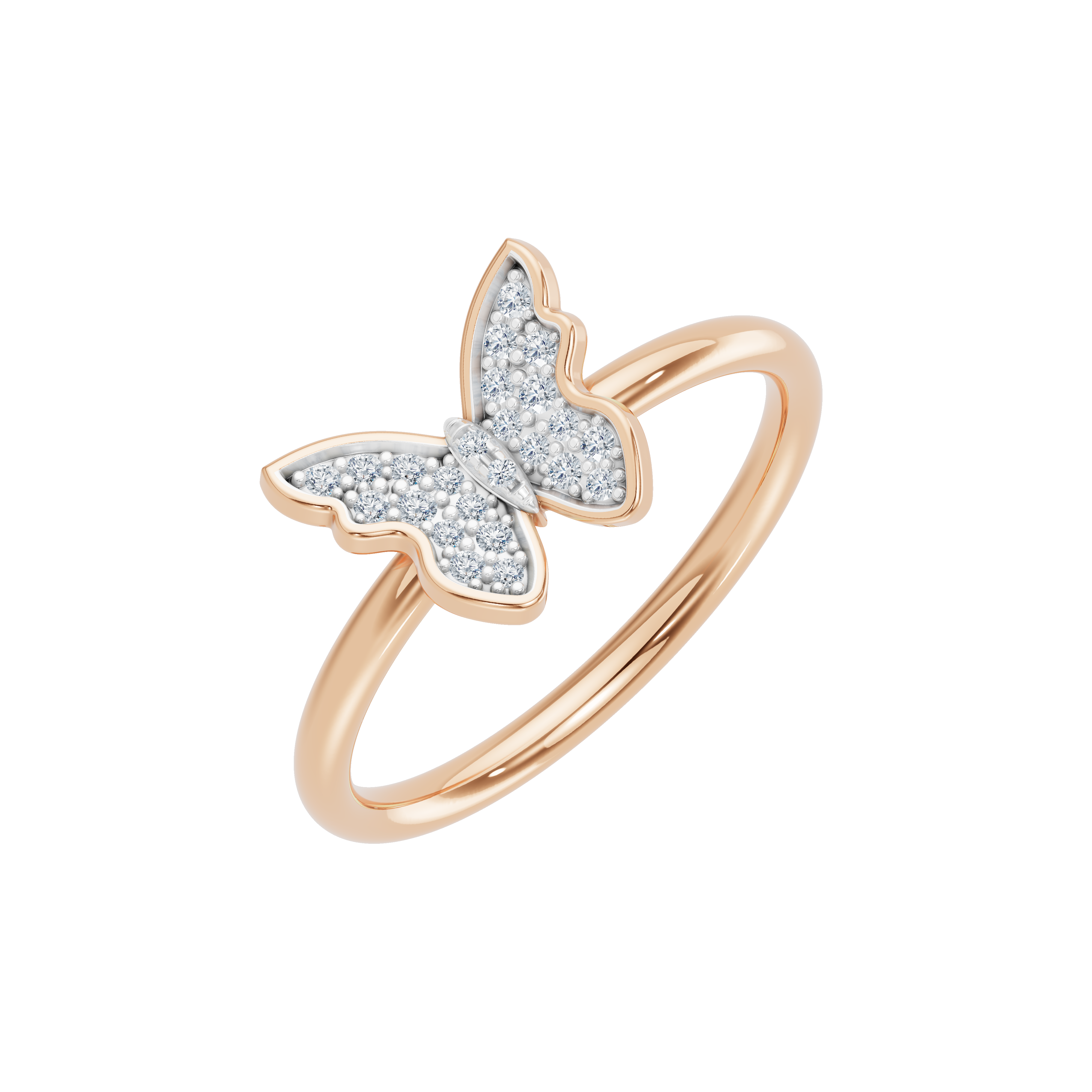 Złoty pierścionek z motywem motyla wysadzanego brylantami