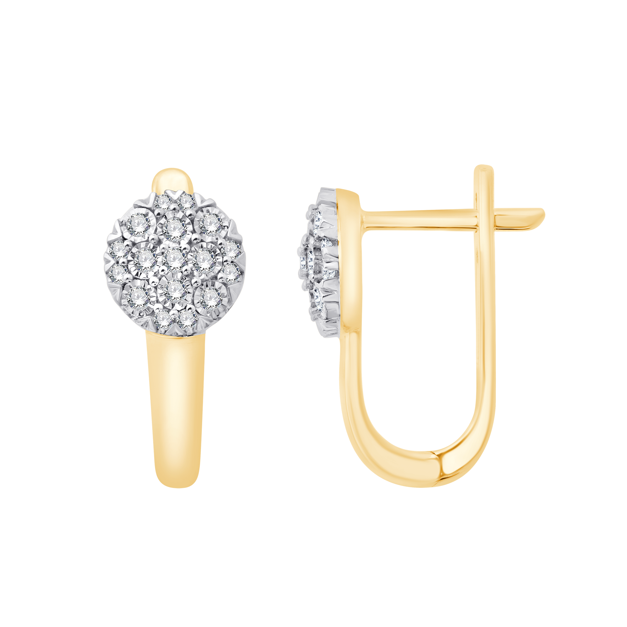 Złote kolczyki z okrągłą brylantową rozetą na zapięciu angielskim