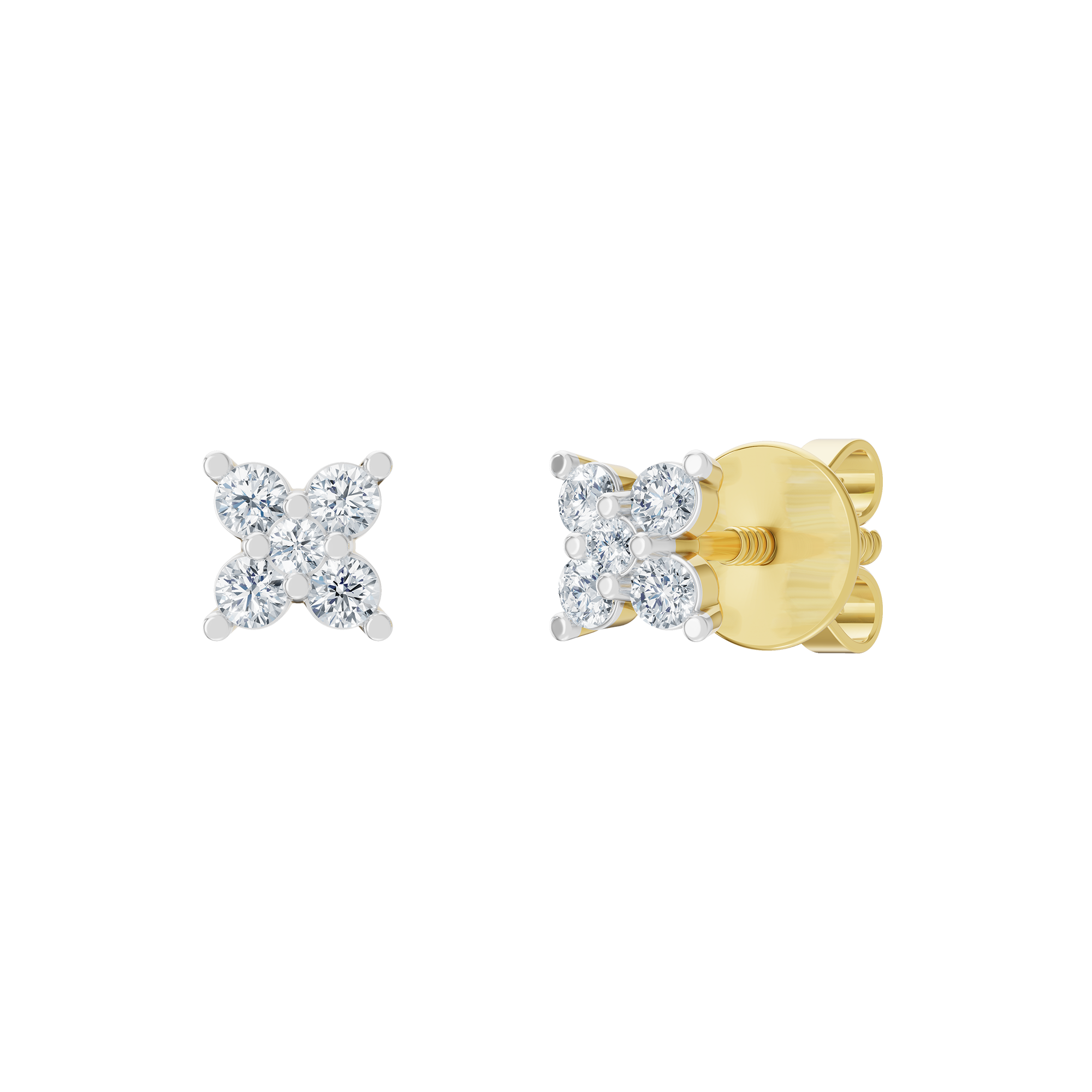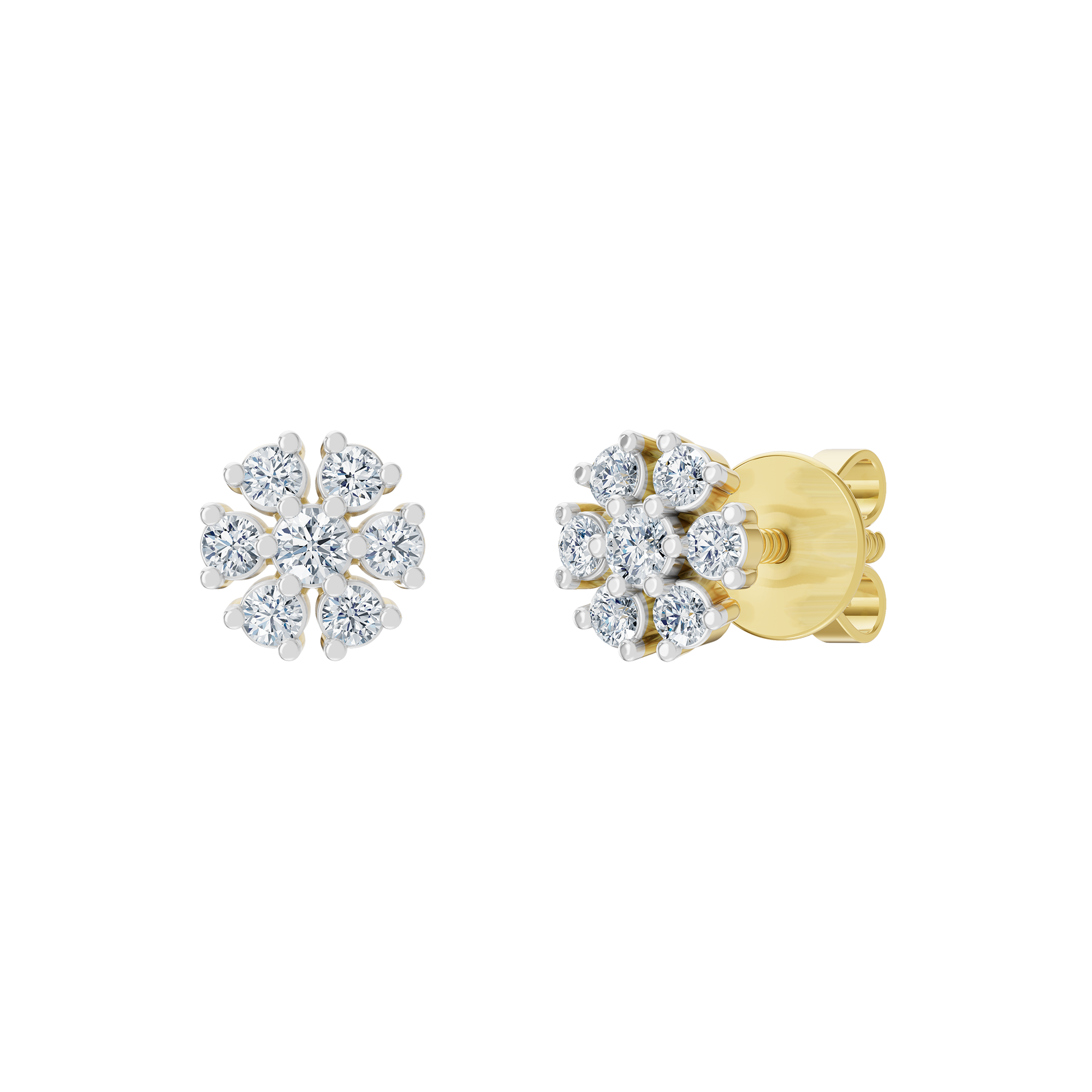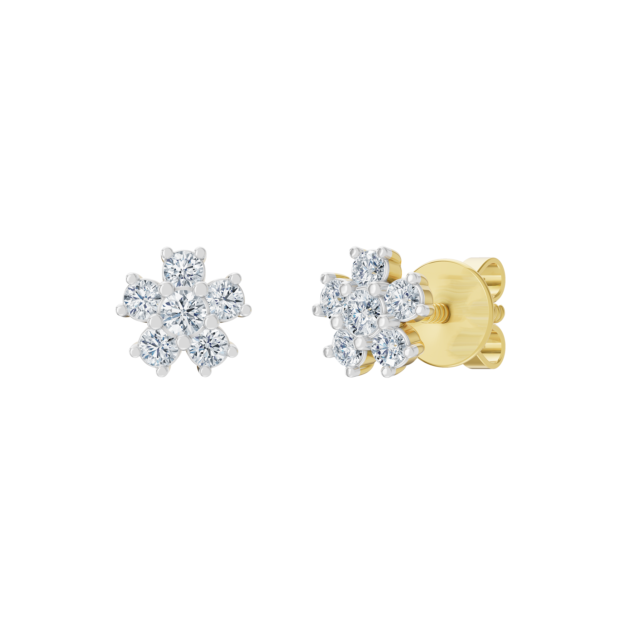 Złote kolczyki z rozbudowanym brylantowym motywem kwiatowym