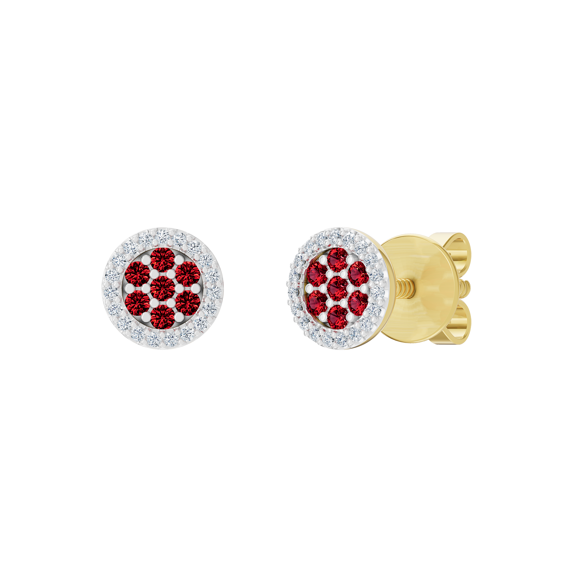 Złote kolczyki z rubinową rozetą otoczoną brylantami