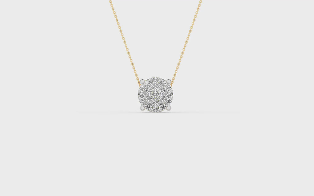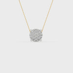 Okrągły wisiorek wysadzany diamentami o szlifie brylantowym. Łańcuszki sprzedawane oddzielnie.