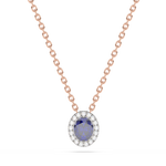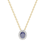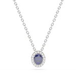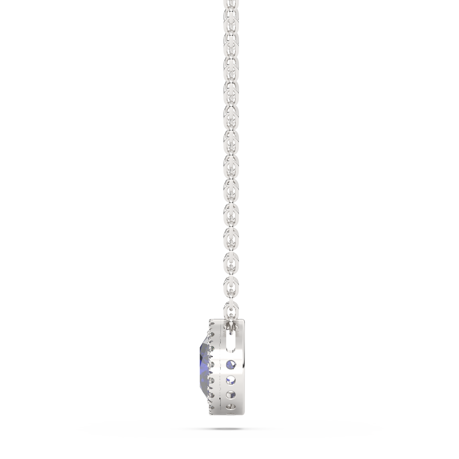 Piękna zawieszka halo z brylantami i polerowanym okrągłym niebieskim szafirem. Łańcuszki sprzedawane oddzielnie.