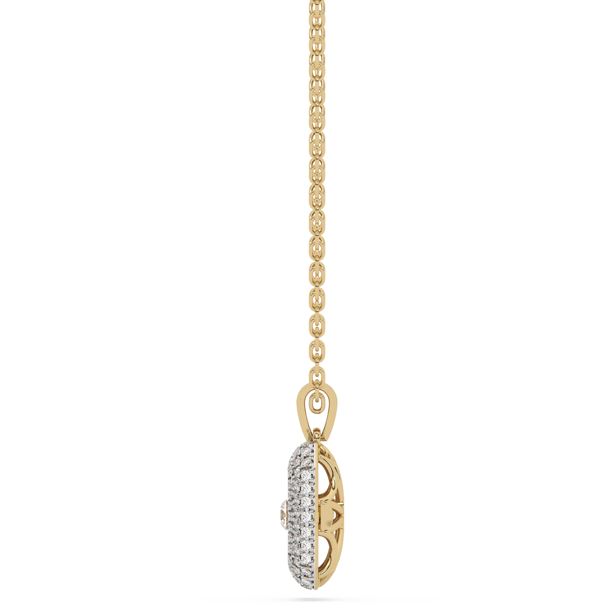 Złota zawieszka z brylantami pavé i centralnym kamieniem