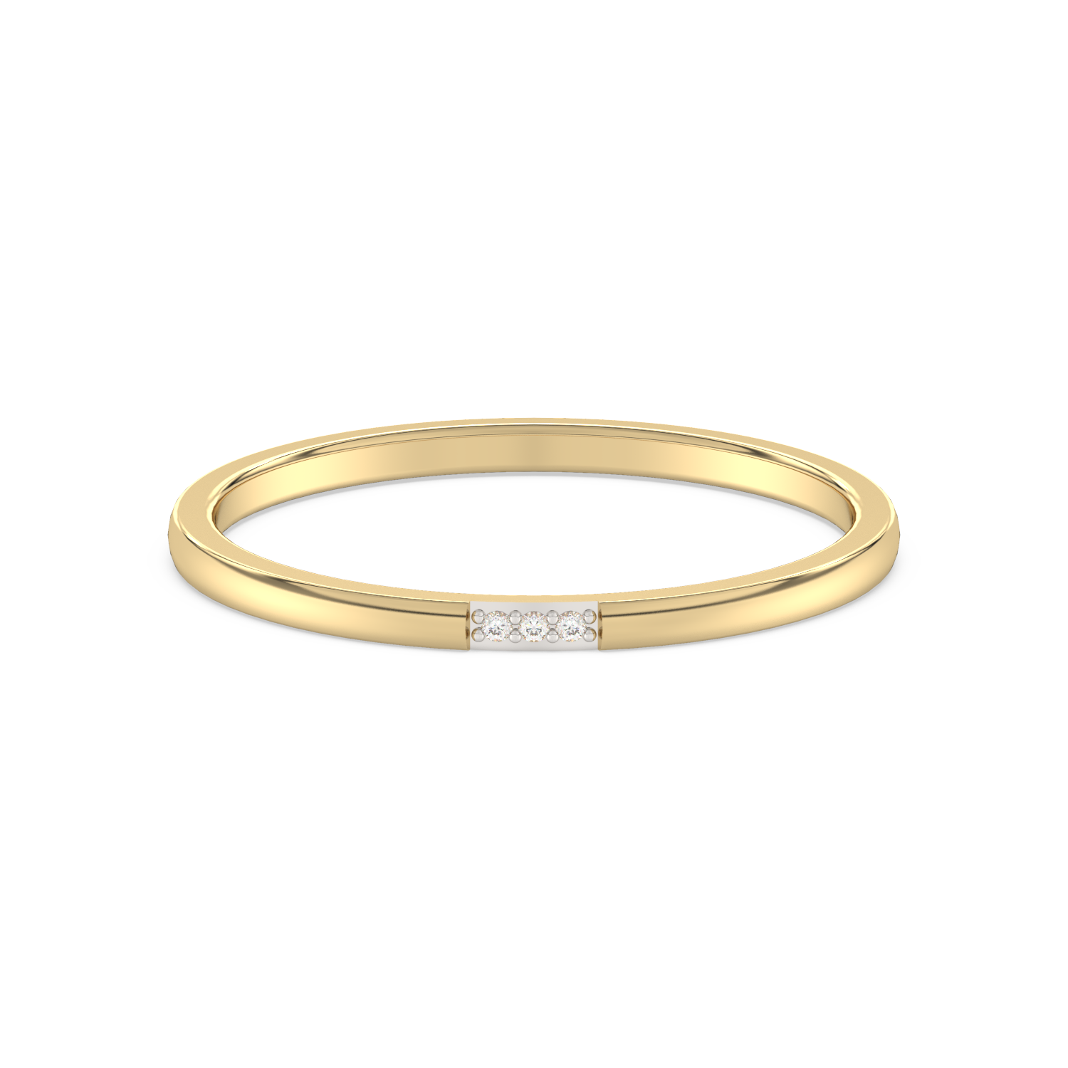 Elegancka, cienka obrączka z trzema brylantami pośrodku. Możliwość łączenia z innymi pierścionkami.