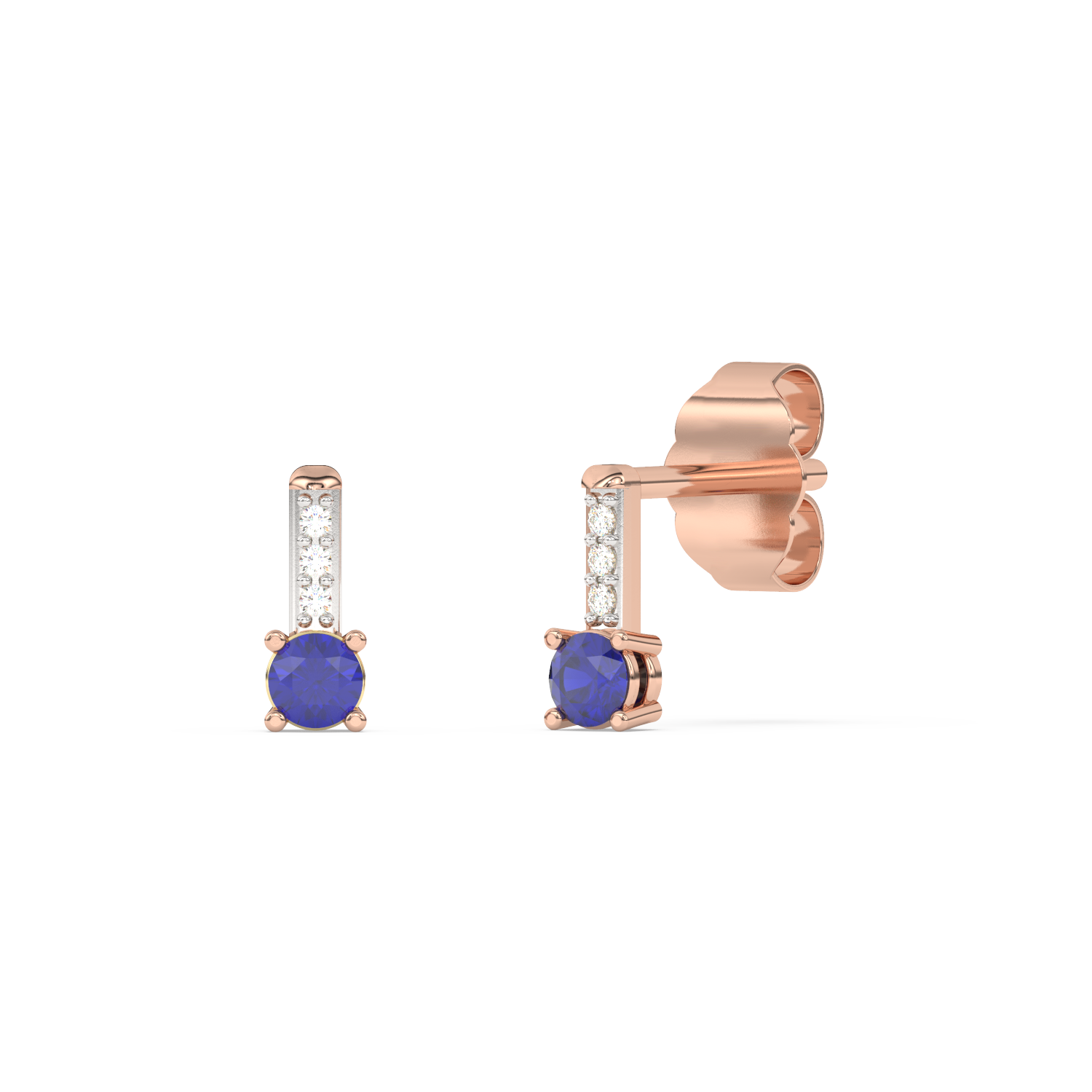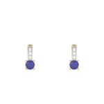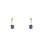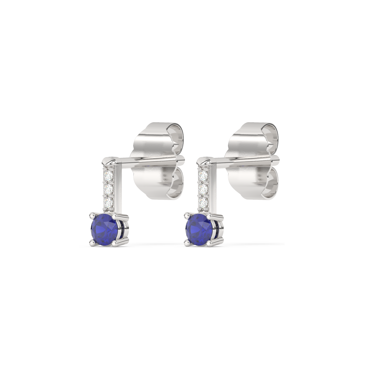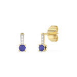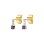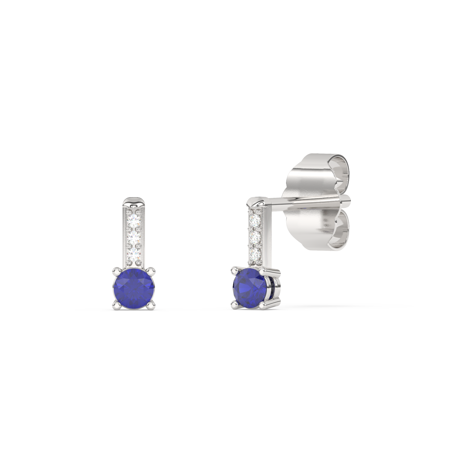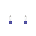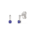 Small earrings with a diamond band atop a round sapphire. We also offer a matching ring and pendants.