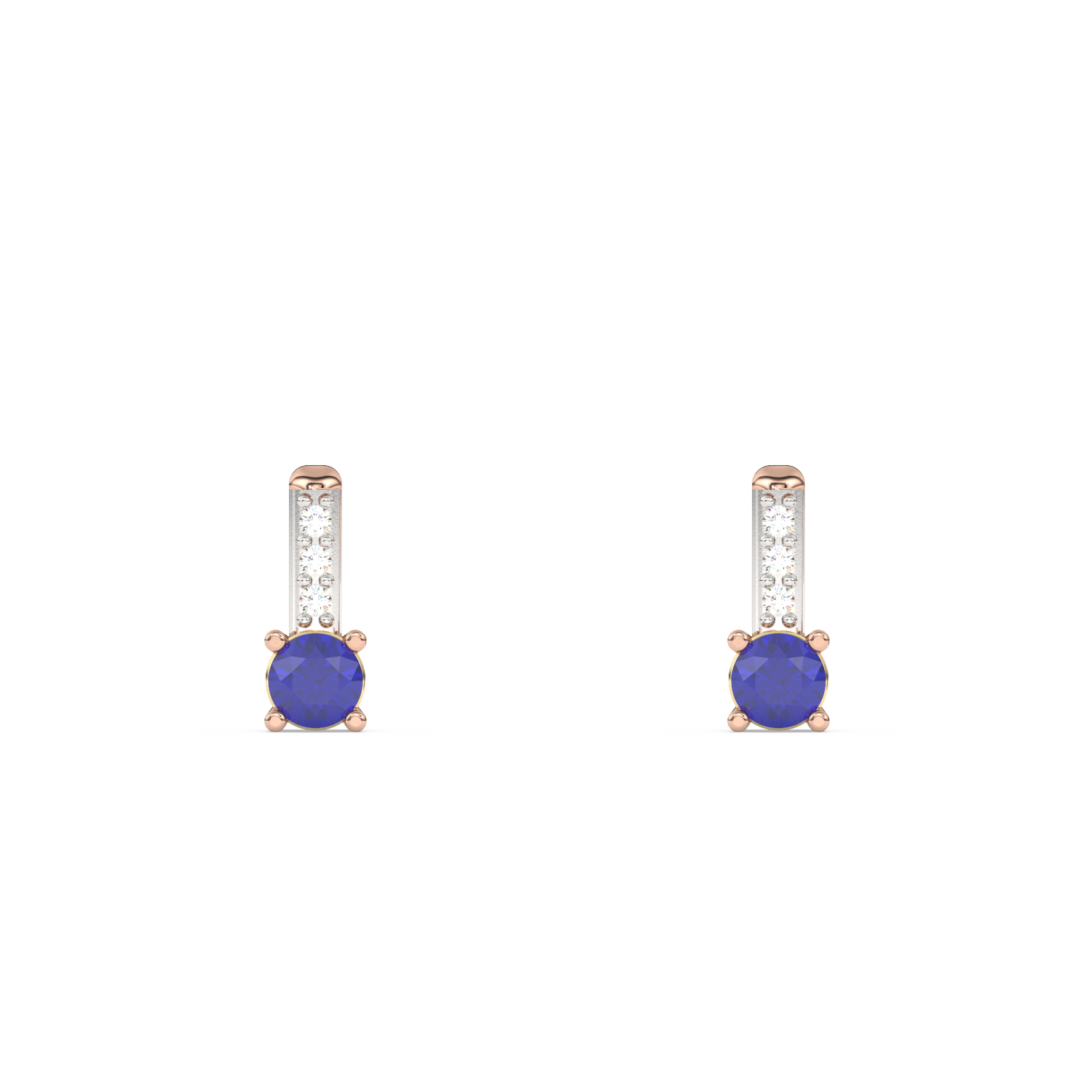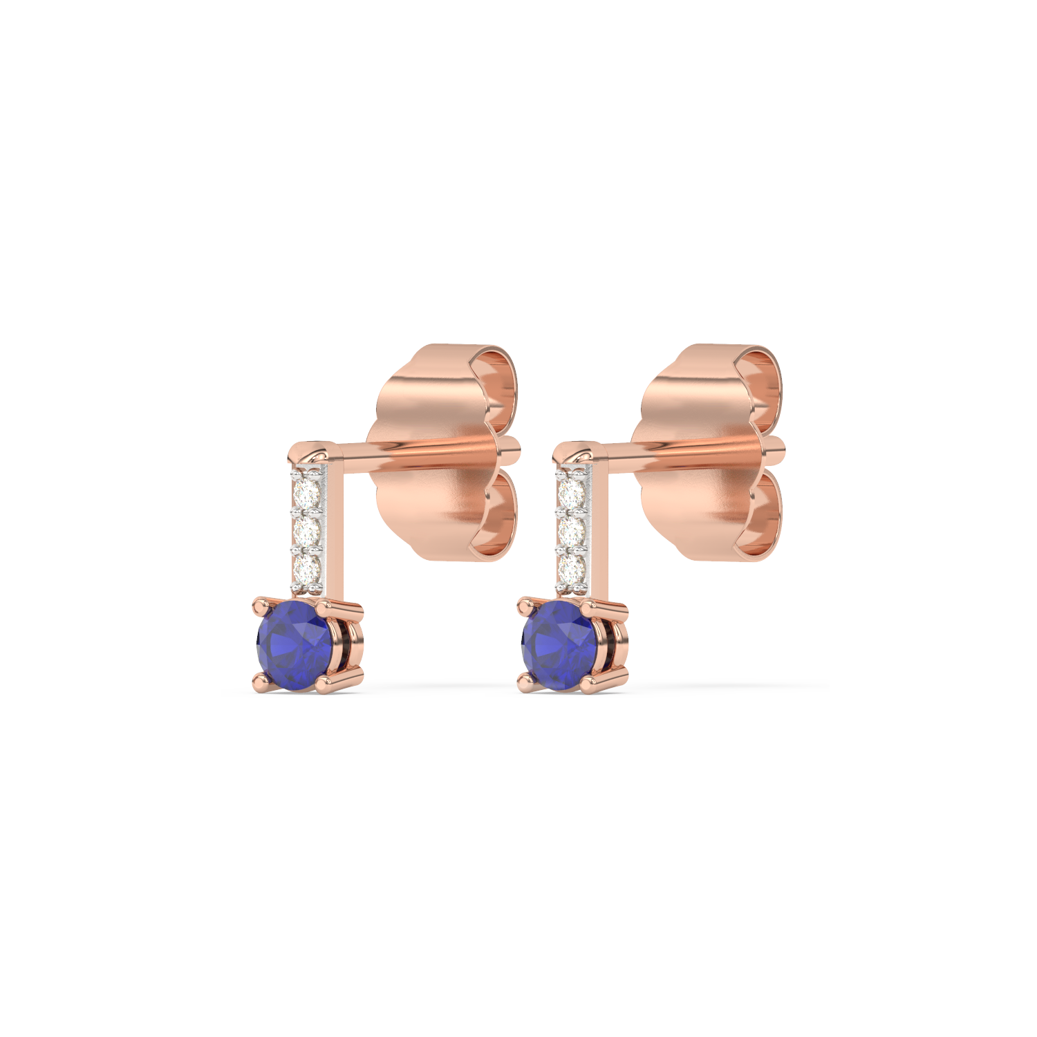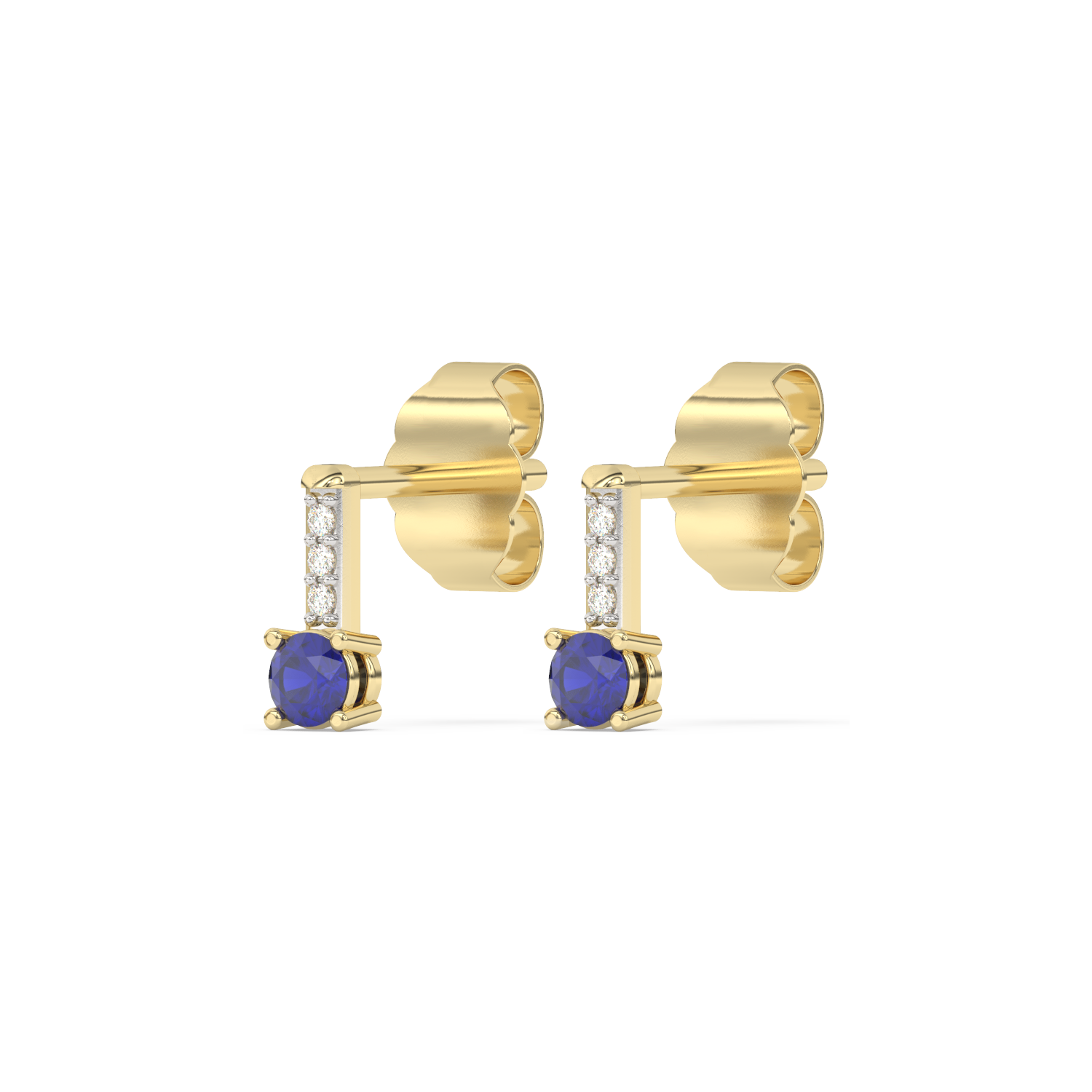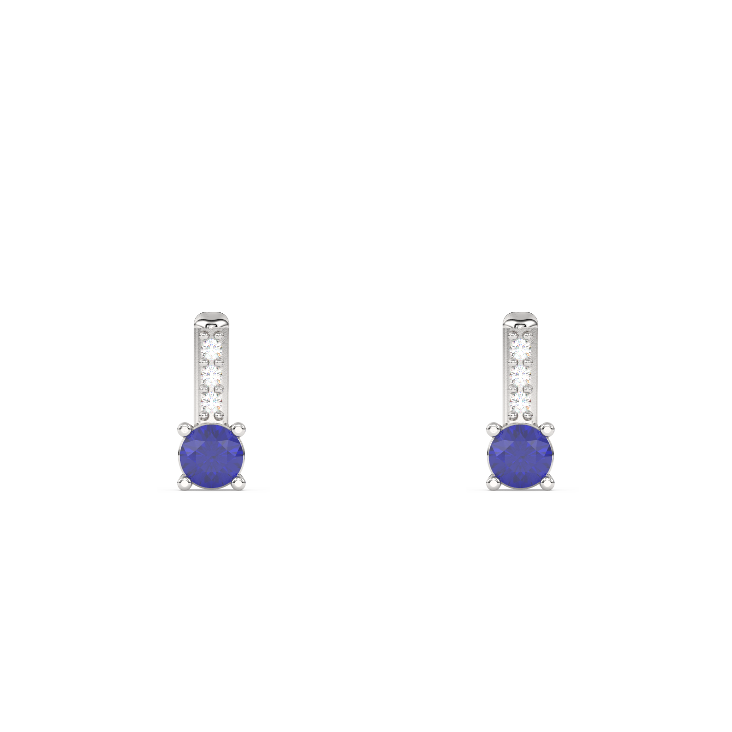 Small earrings with a diamond band atop a round sapphire. We also offer a matching ring and pendants.