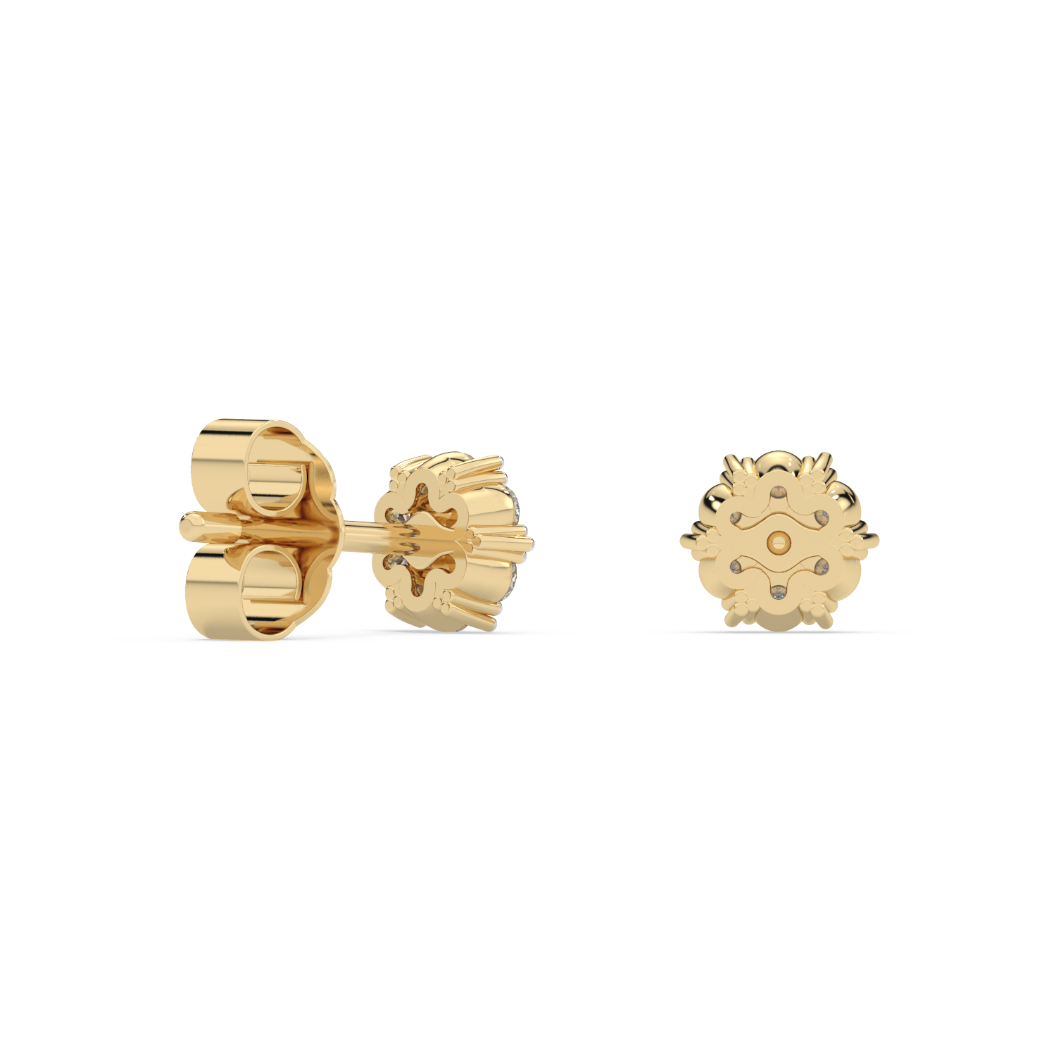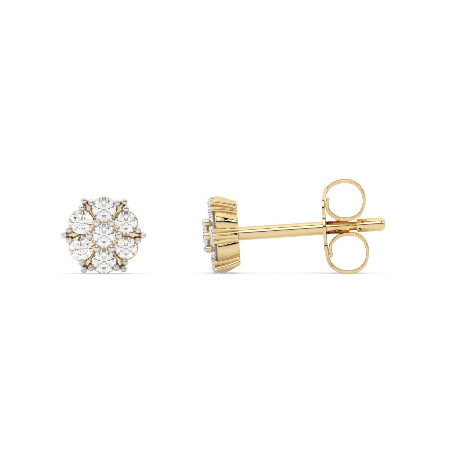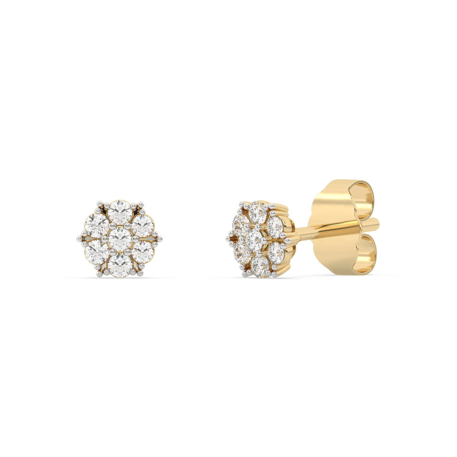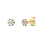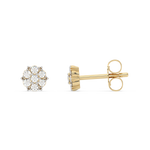 These gold stud earrings feature a flower-shaped stud filled with seven round diamonds. They are the perfect complement to the entire floral collection available in our store.