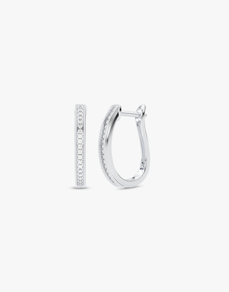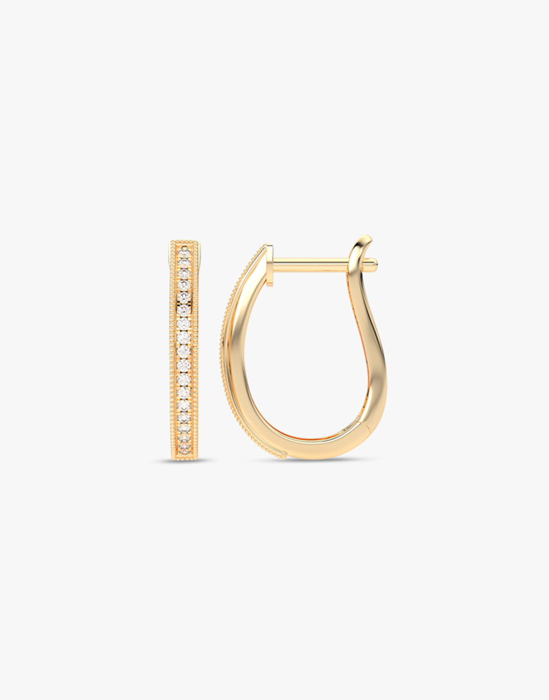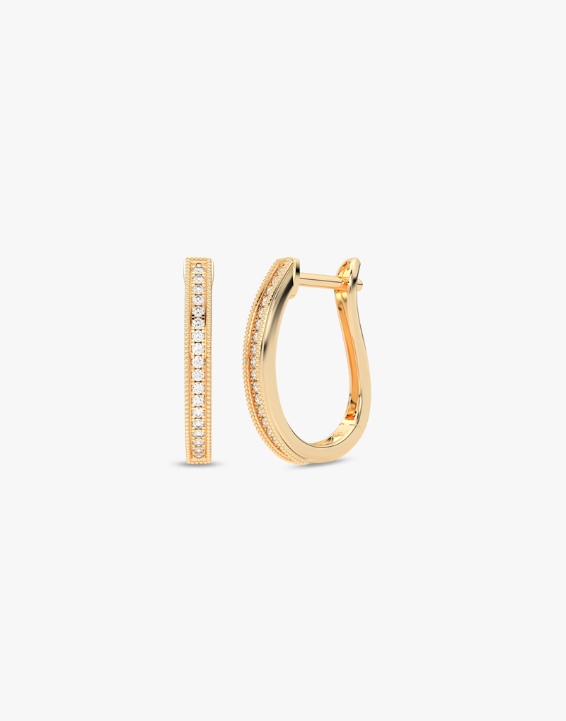 Hoop earrings with a diamond stripe in the center covering a gold hoop.