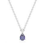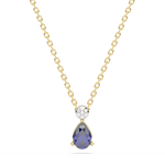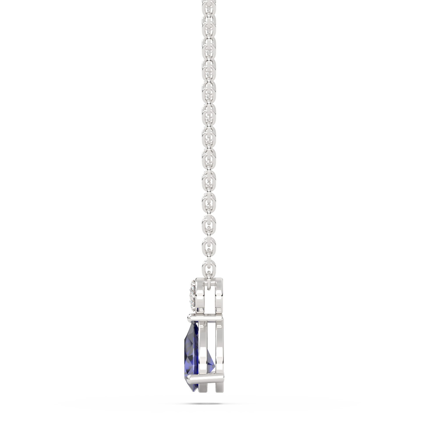 Pendant featuring a teardrop-shaped blue sapphire in a chaton setting and a diamond-set circle. Chains sold separately.