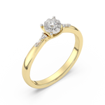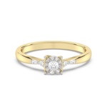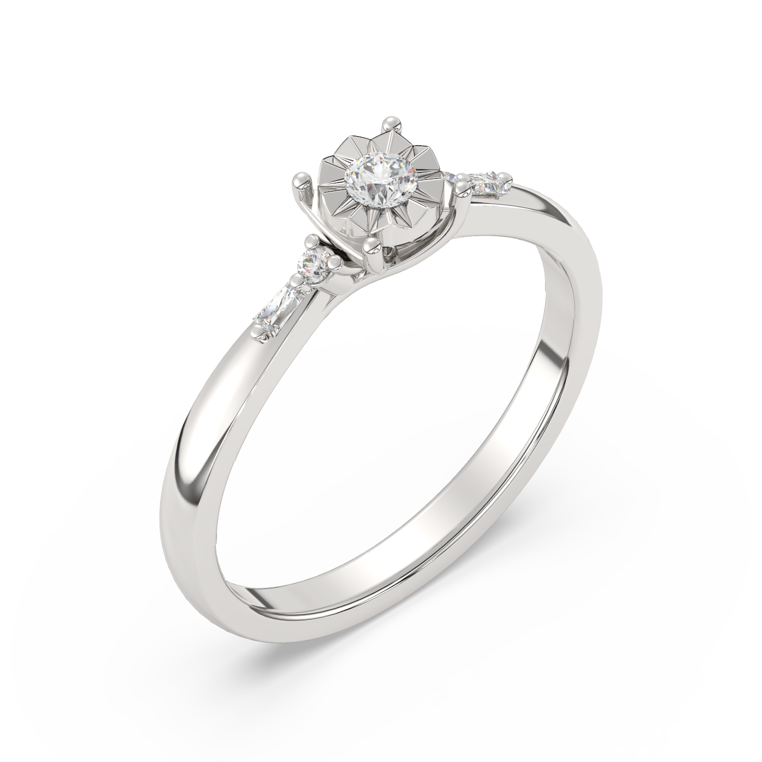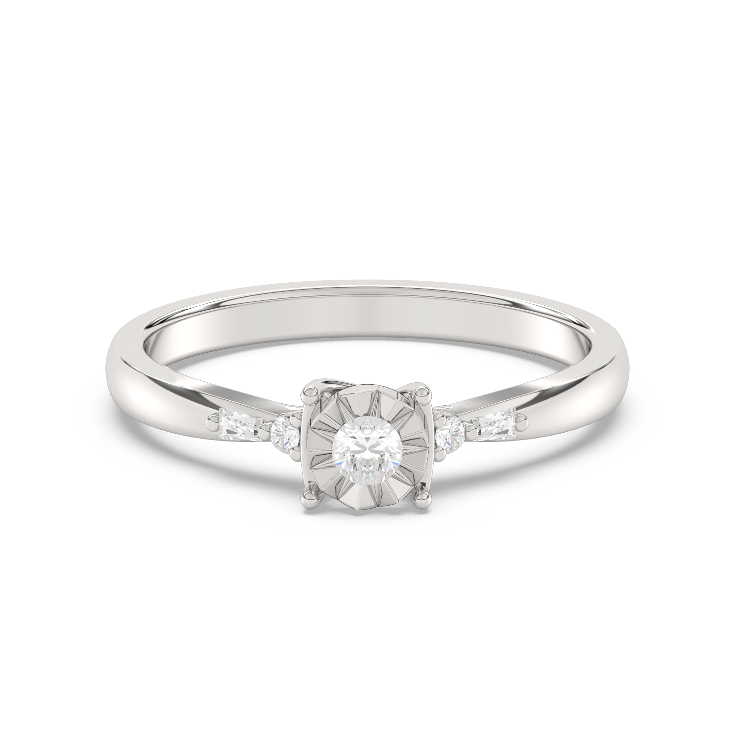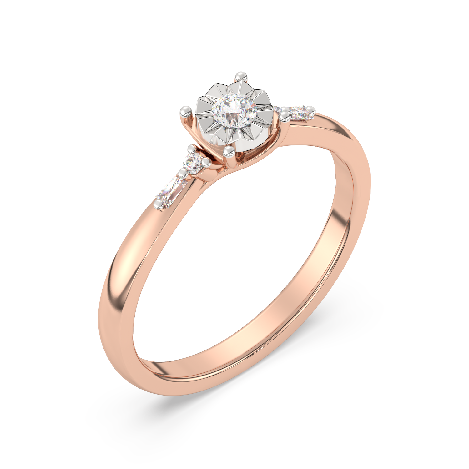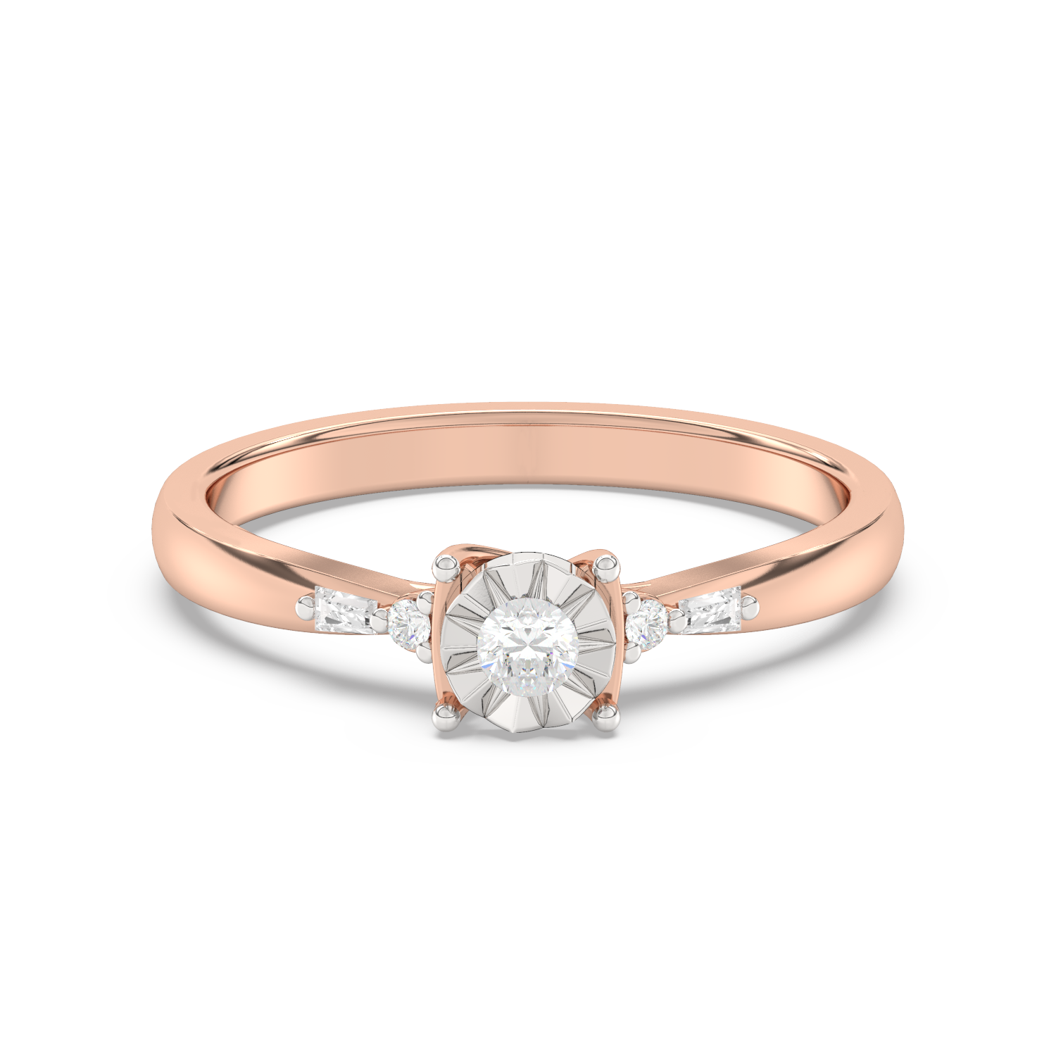 An elegant diamond ring in a subtle chaton setting, with round diamonds on both sides of the band.