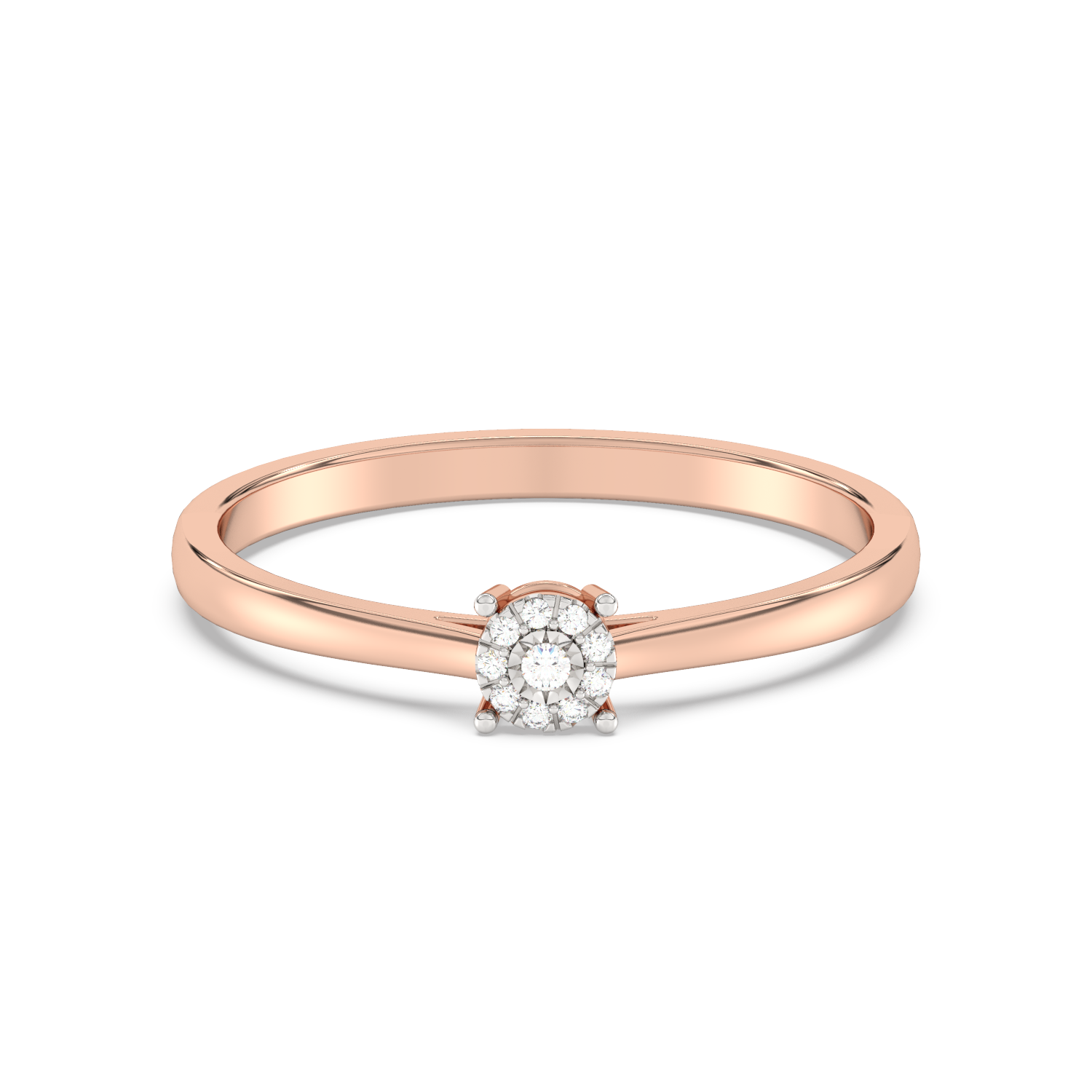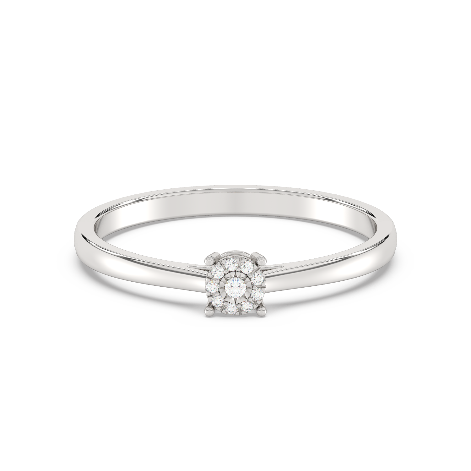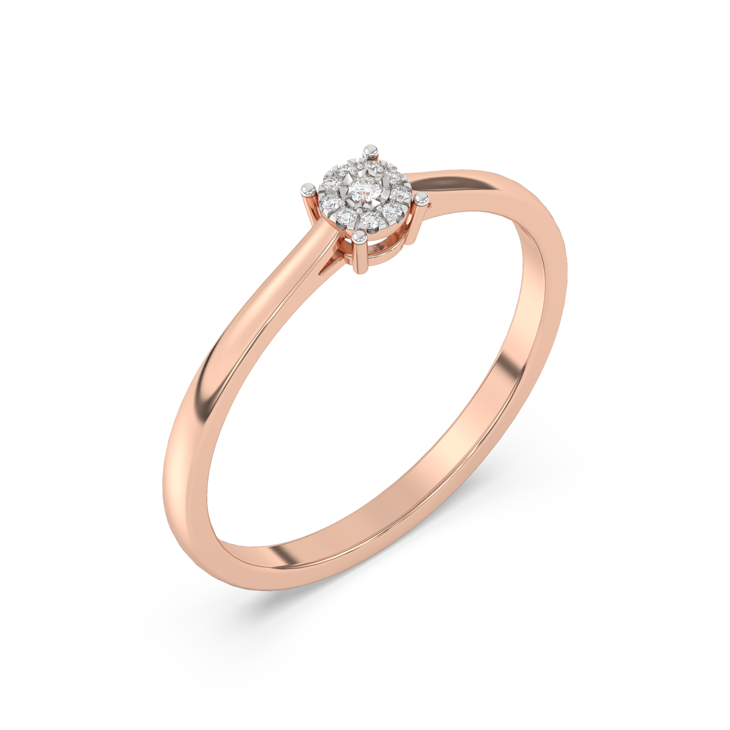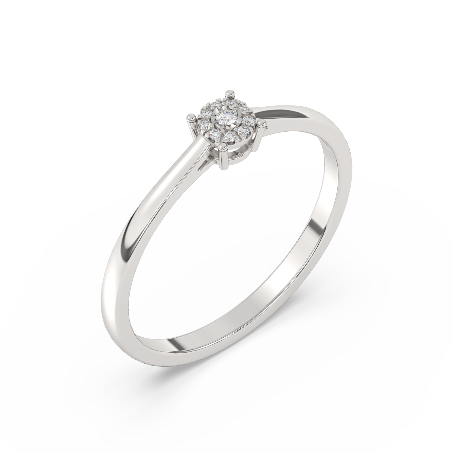 A classic ring with a diamond in the center surrounded by other diamonds.