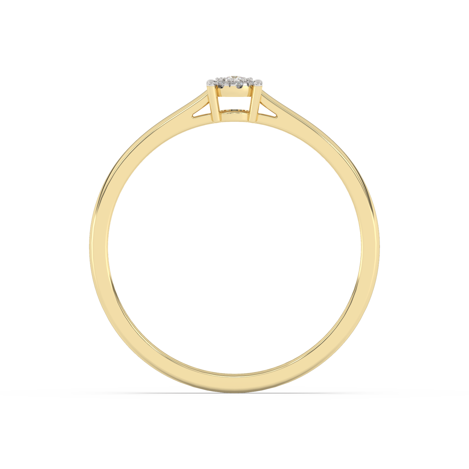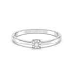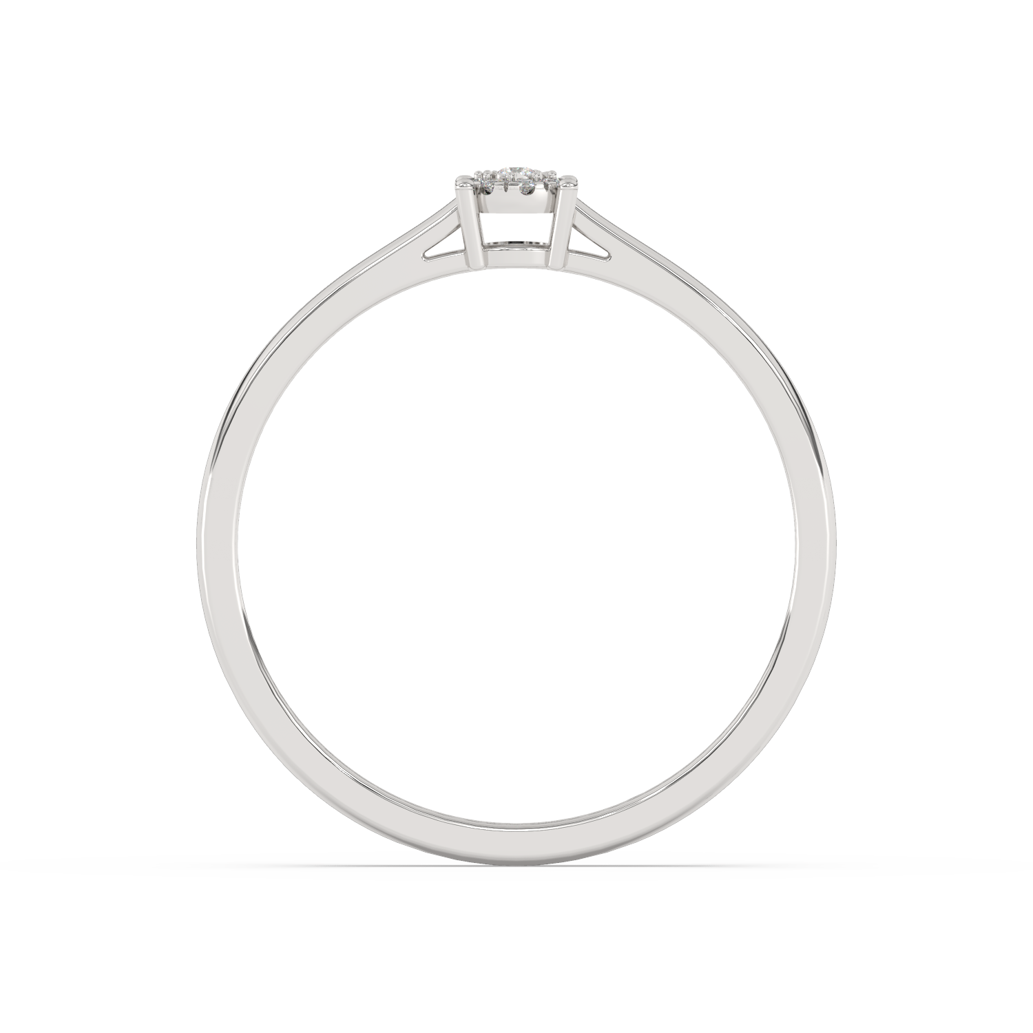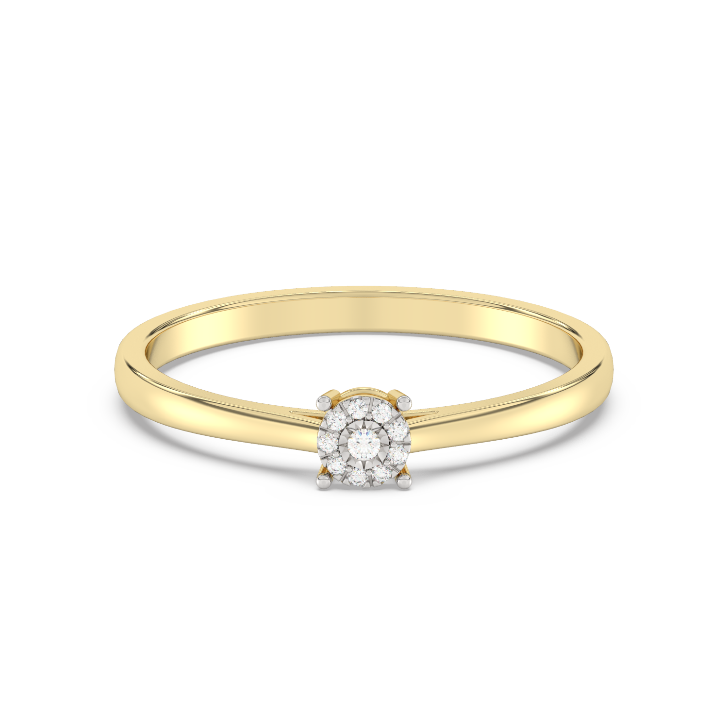 A classic ring with a diamond in the center surrounded by other diamonds.