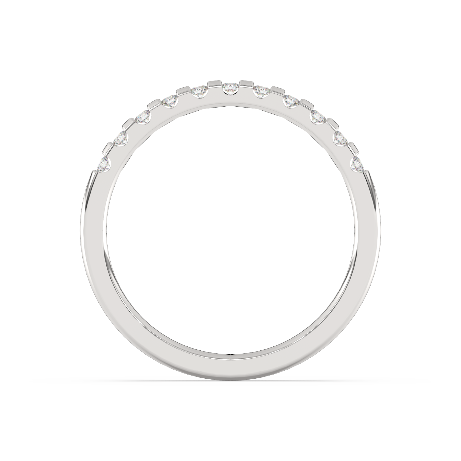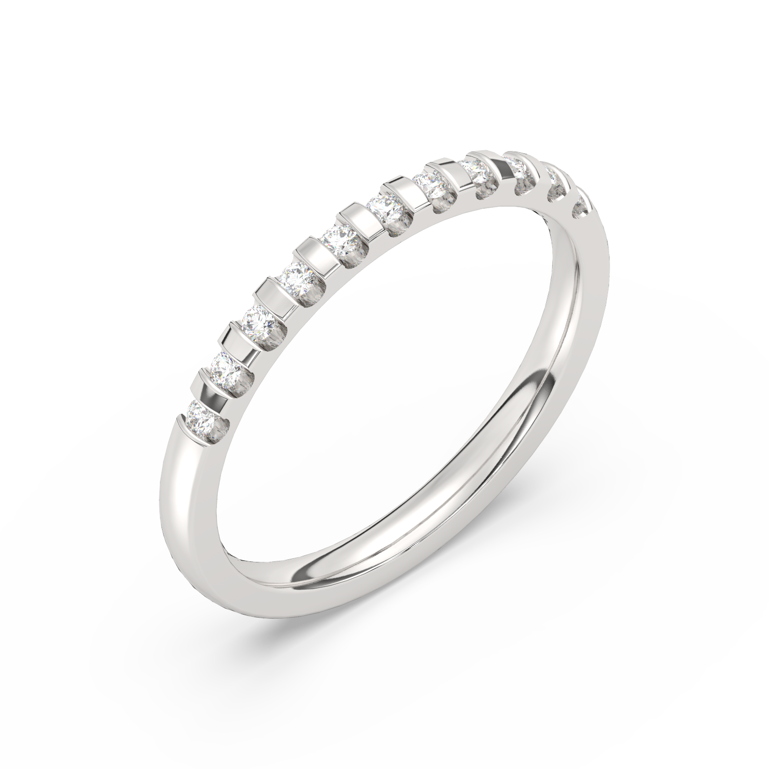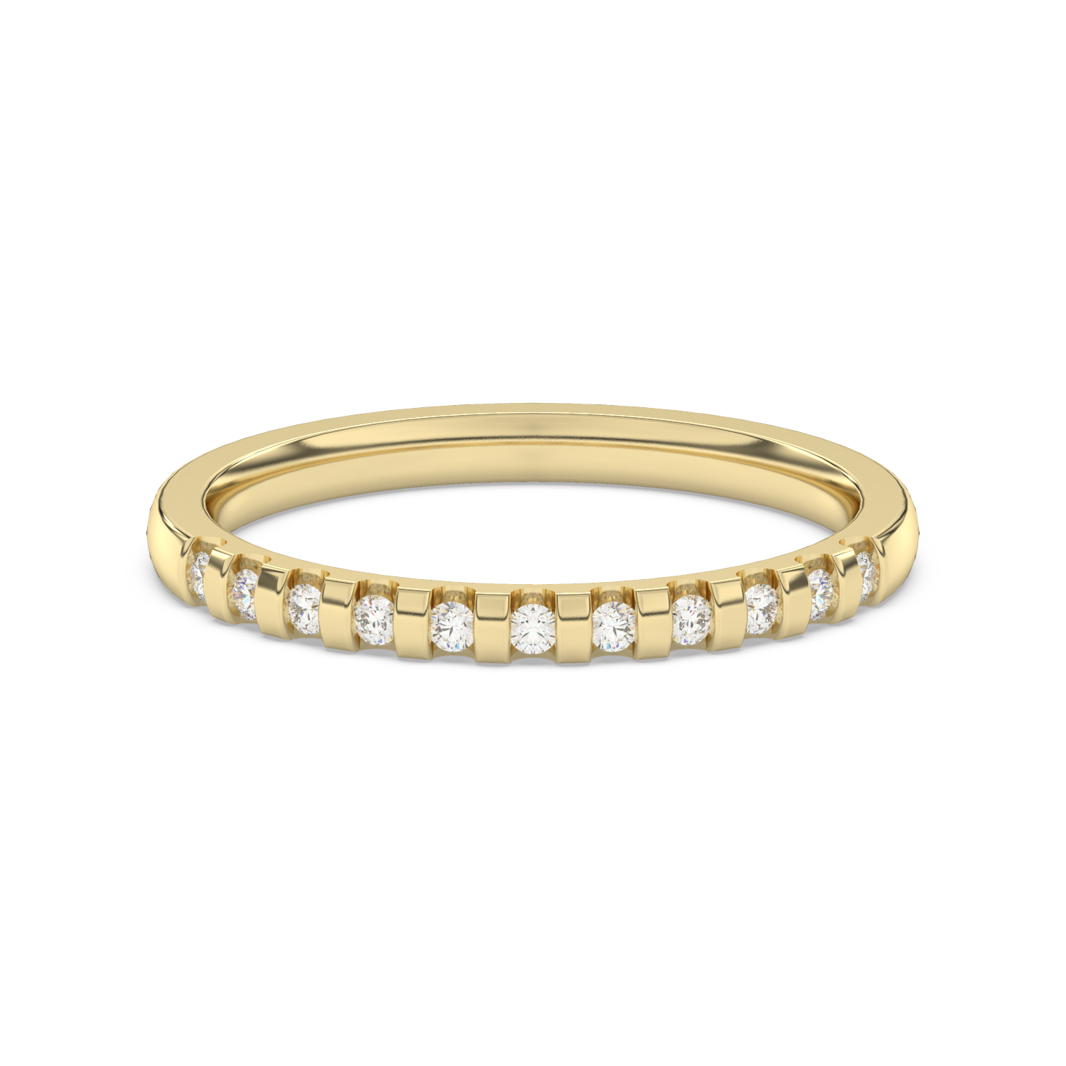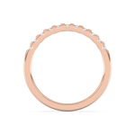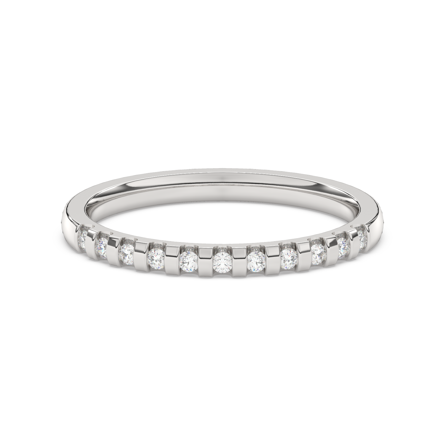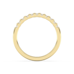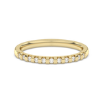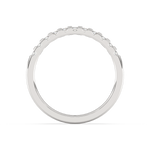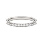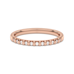 A classic wedding ring with numerous diamonds arranged at intervals.