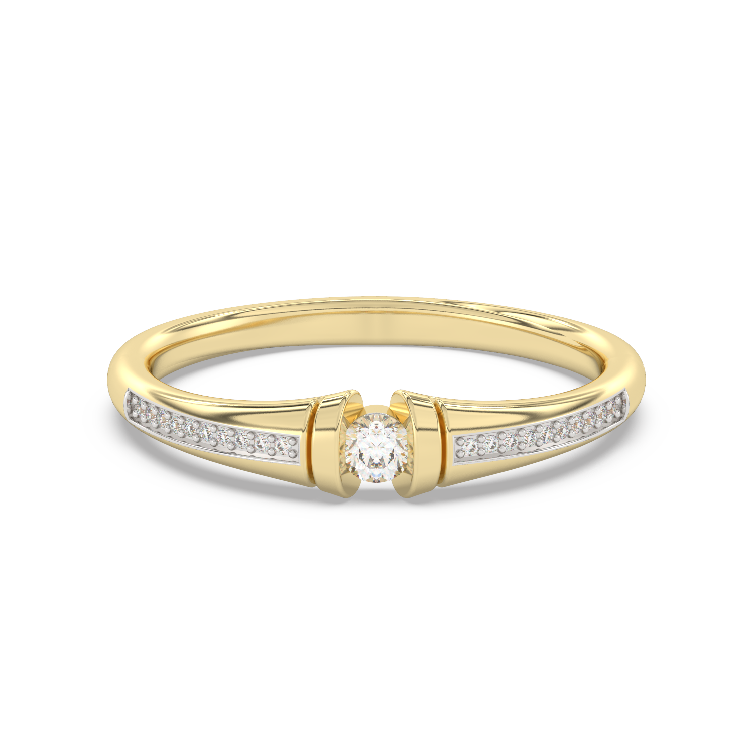 Złoty pierścionek z pół-paskami brylantów z centralnym diamentem od Venetia Jewels