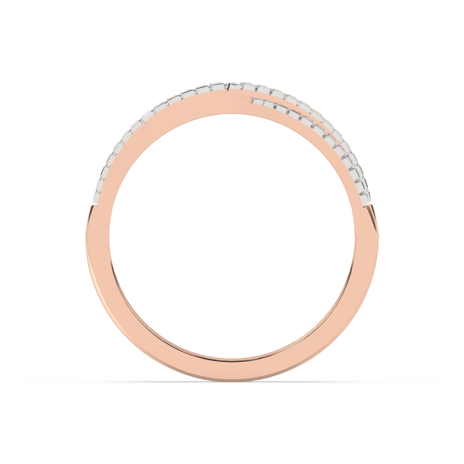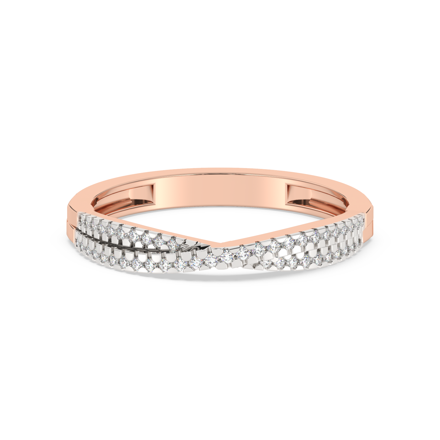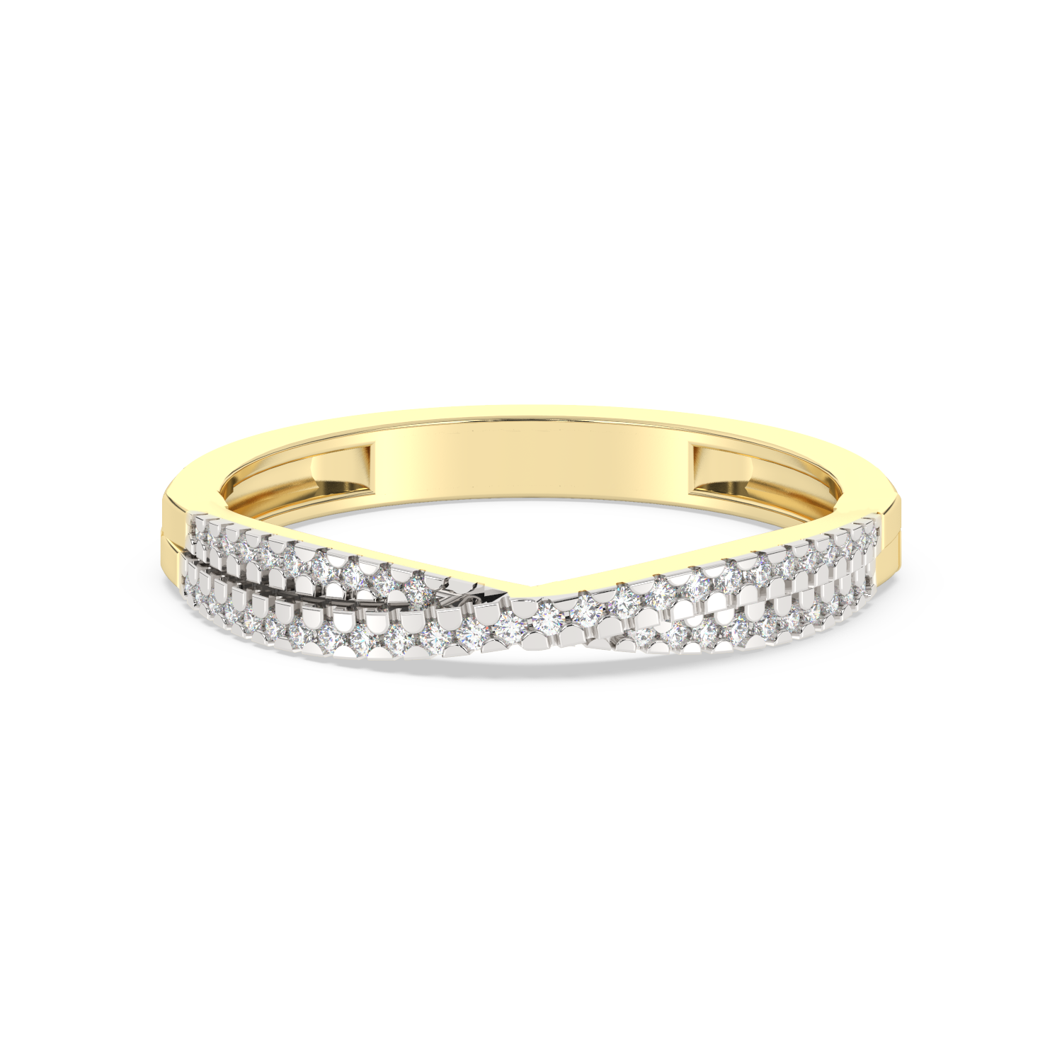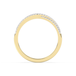 An elegant ring with two overlapping diamond stripes on a gold band. Can be stacked with other rings.