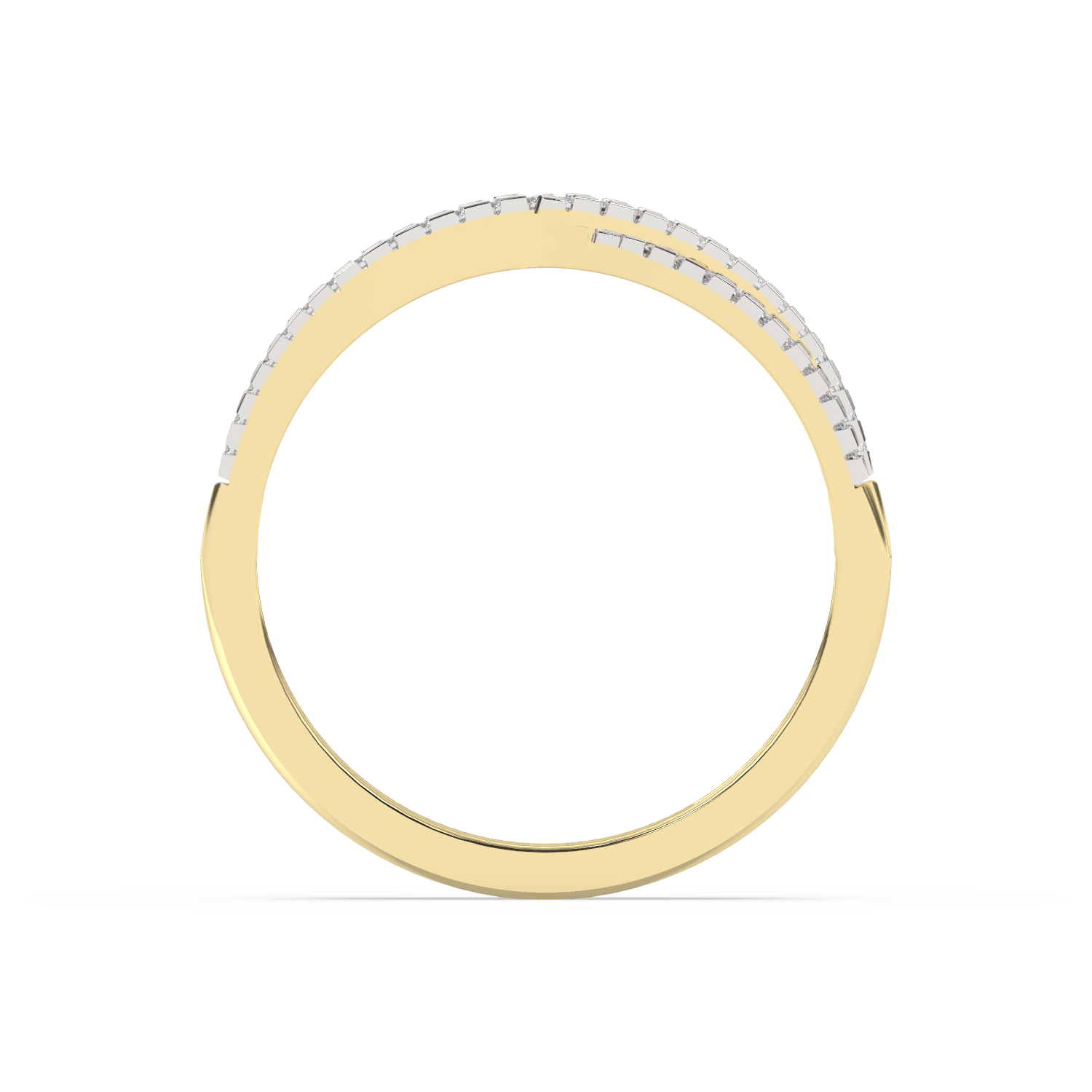 Our gold and diamond ring features a unique design with two diamond bands. These subtle details add a unique, eye-catching charm. Perfect for any occasion—from everyday gatherings to special occasions when you want to feel truly special.