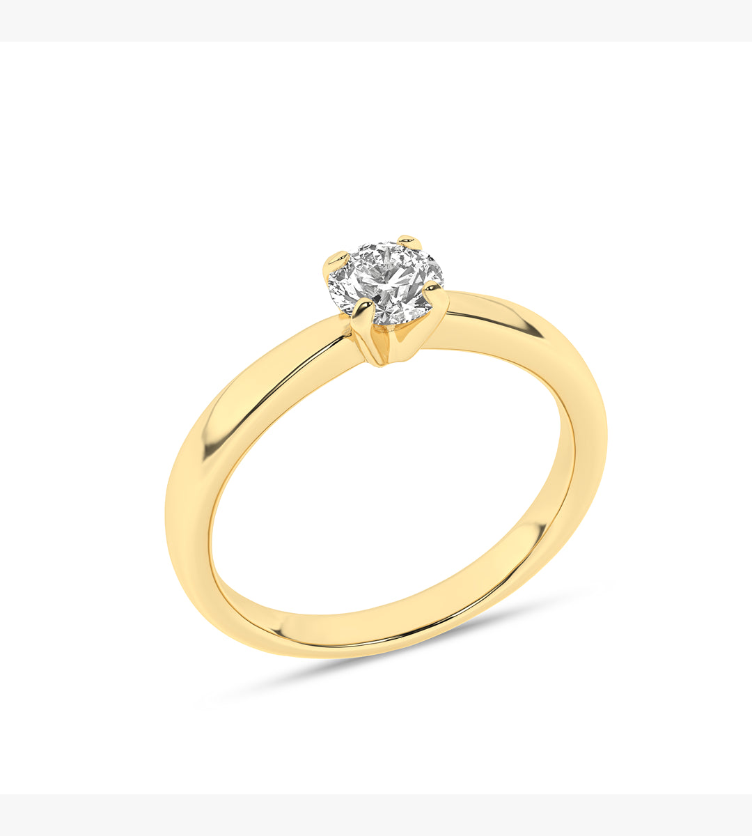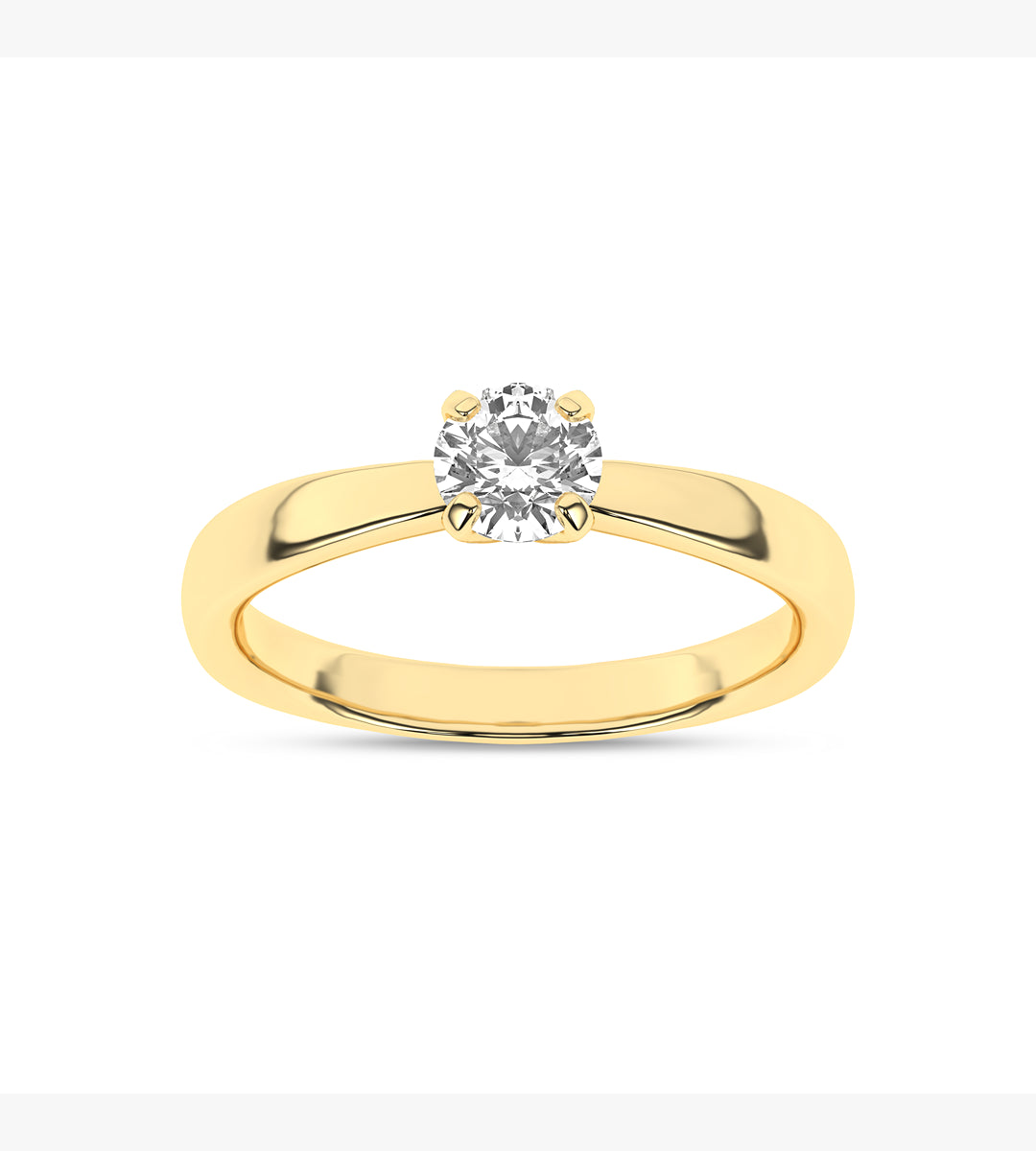 Crafted from the highest quality gold, this engagement ring features a diamond set in a four-point setting, ensuring its security and stability. Its elegant and timeless design makes it a perfect symbol of love and devotion.
