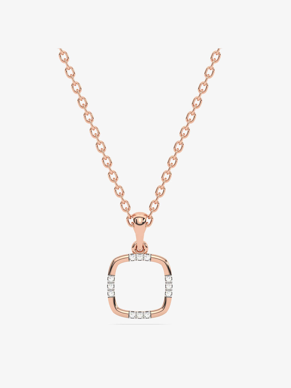 A subtle, square-shaped pendant plated in classic gold and symmetrically adorned with diamonds. Chains sold separately.