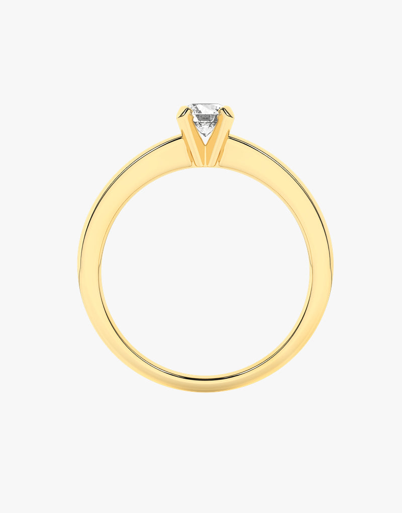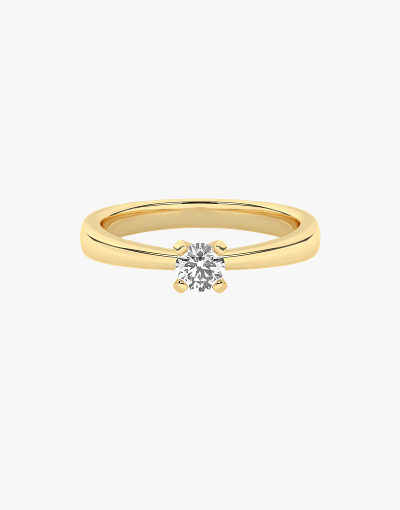 A beautiful gold engagement ring with a cut diamond in a four-point setting. Its classic design and subtle elegance make it the perfect symbol of eternal love. Perfect for a special occasion to express your feelings.