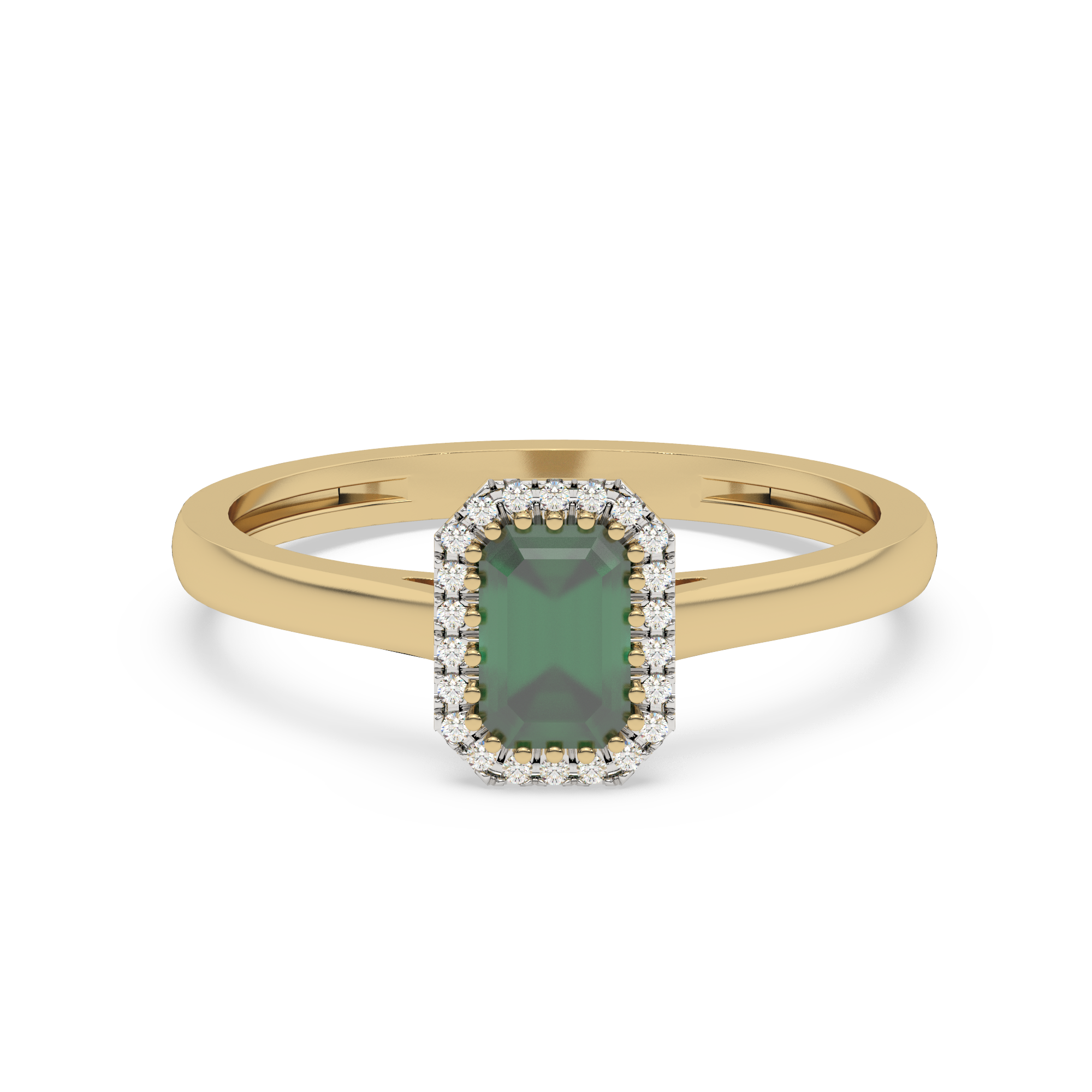 Elegancki złoty pierścionek ze szmaragdem otoczony diamentami od Venetia Jewels