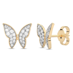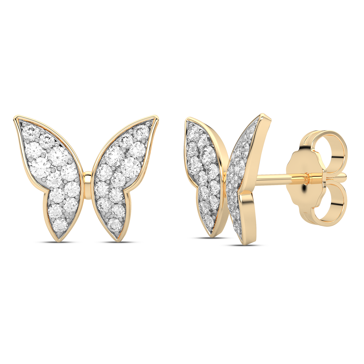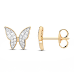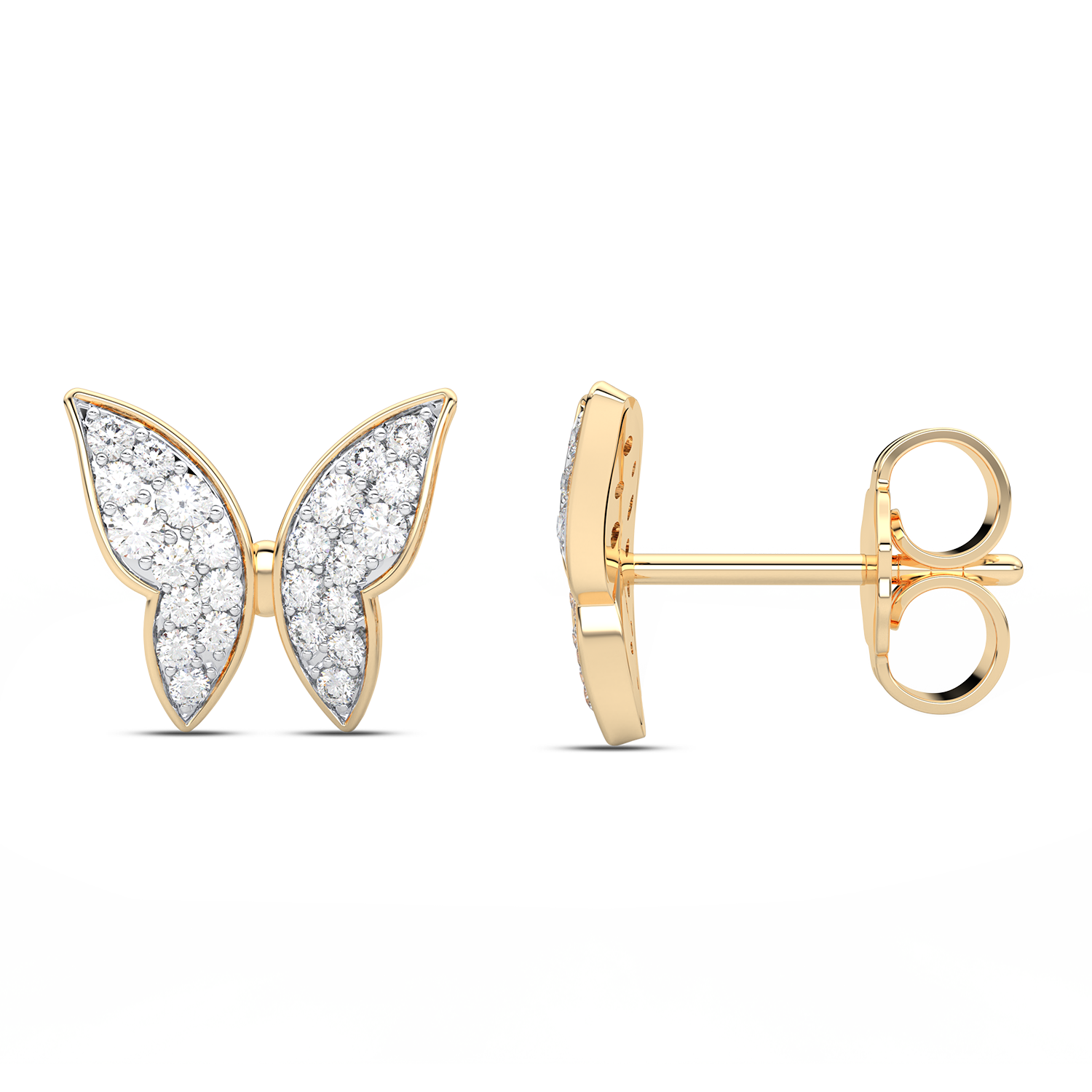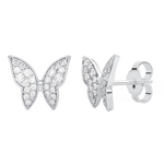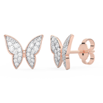 Kolczyki motyle z brylantami na uchu modelki, subtelny i elegancki design od Venetia Jewels