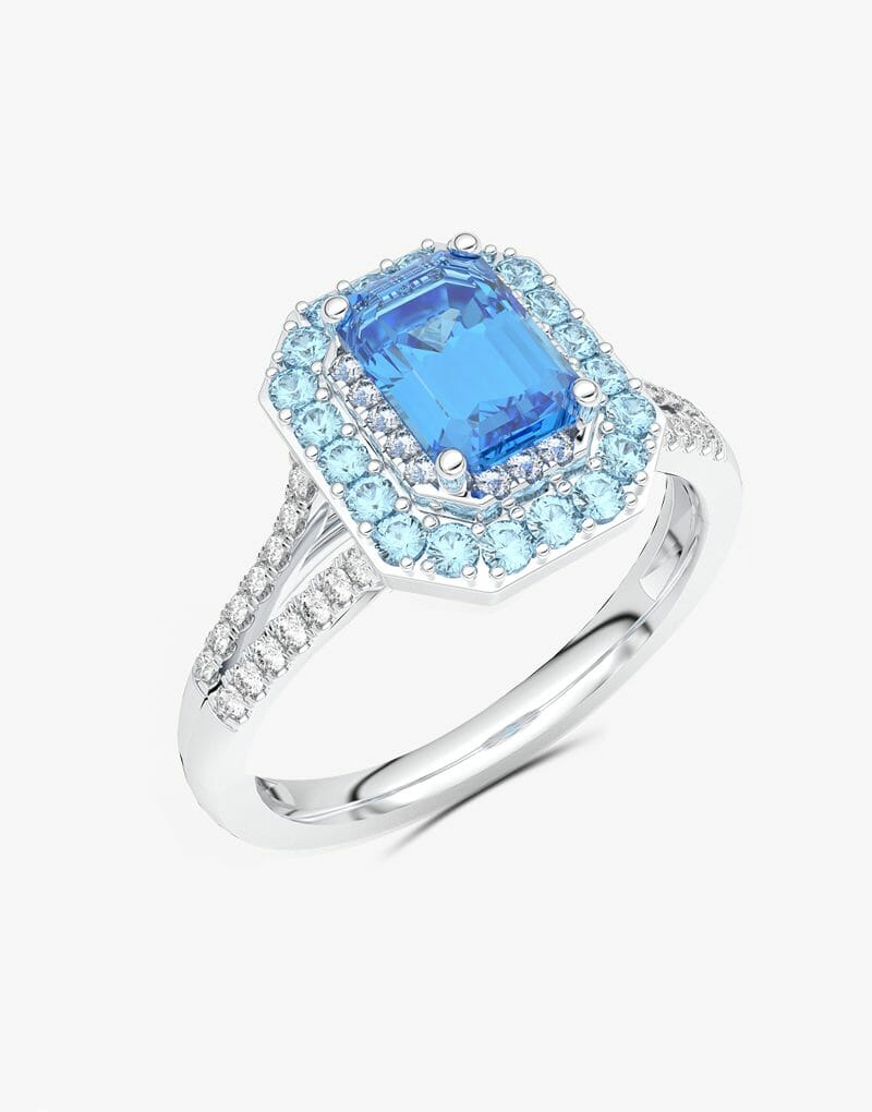 Elegancki pierścionek z niebieskim topazem i brylantami w srebrnej oprawie od Venetia Jewels