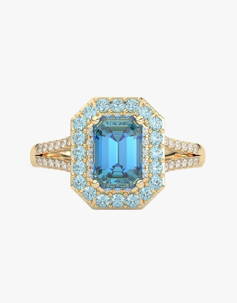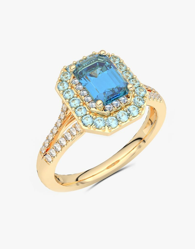 Elegancki pierścionek z niebieskim topazem i brylantami w złotej oprawie od Venetia Jewels