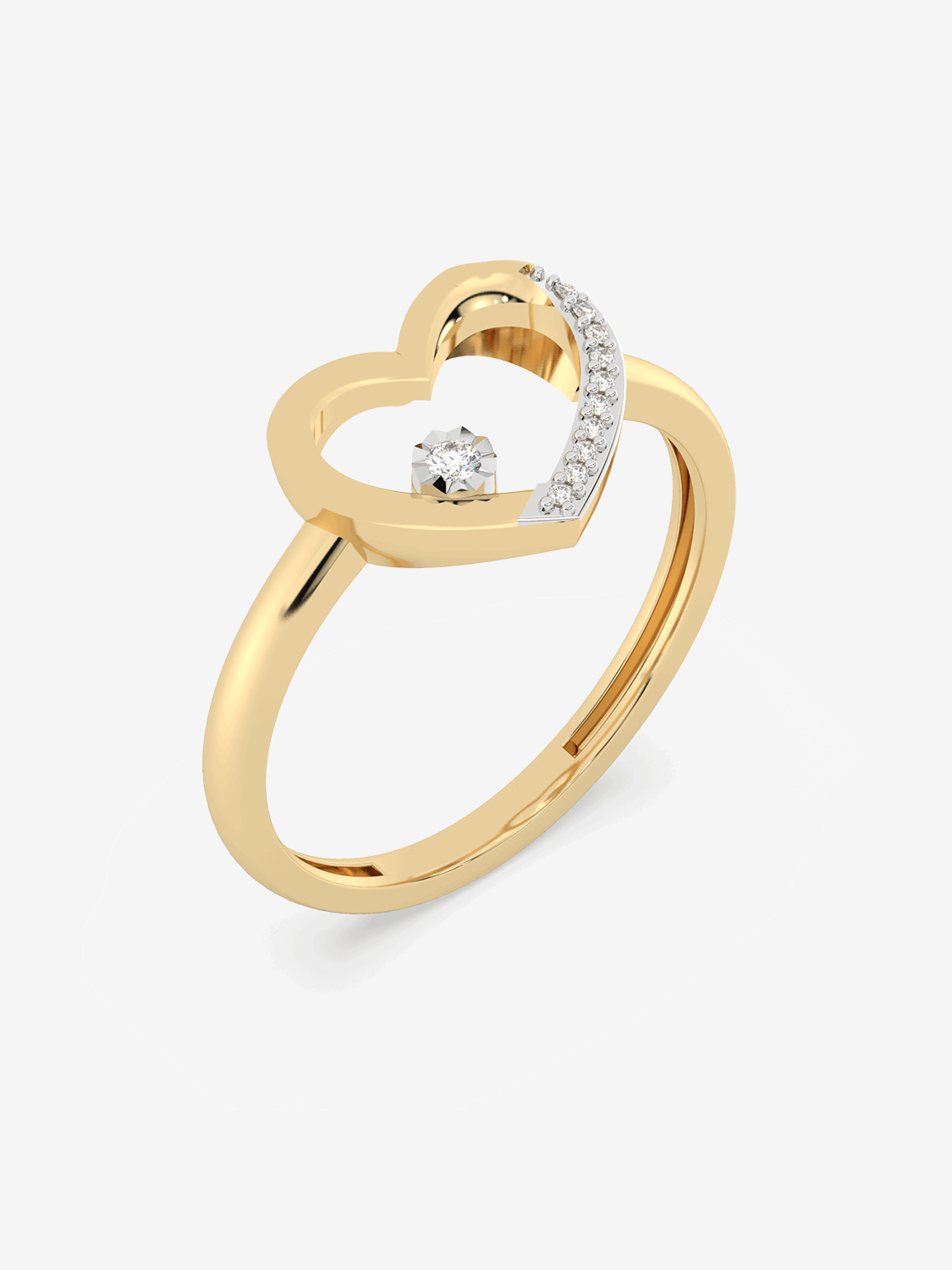 Elegancki złoty pierścionek z sercem i diamentem, idealny na prezent dla ukochanej osoby