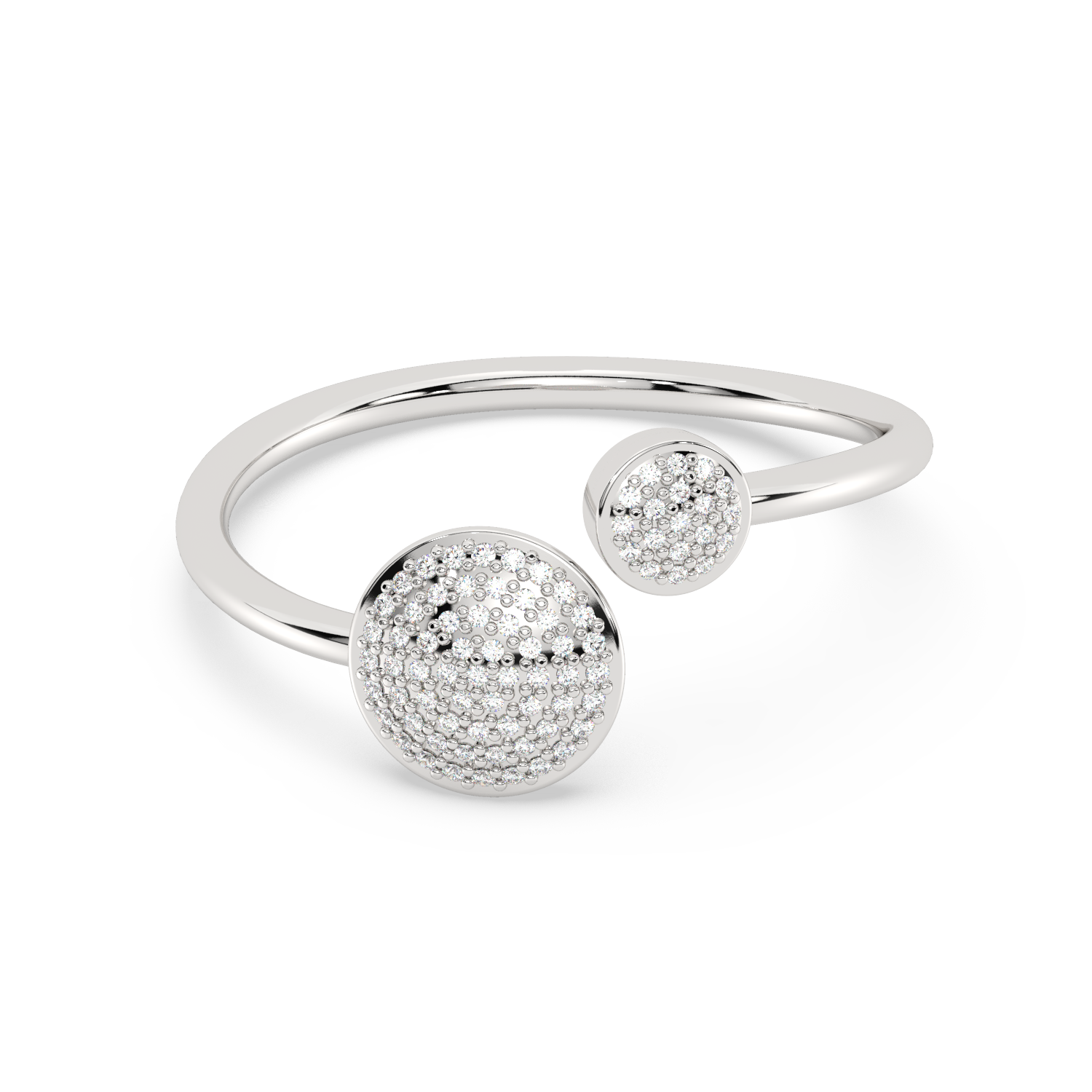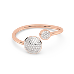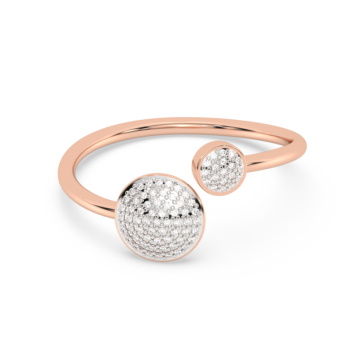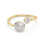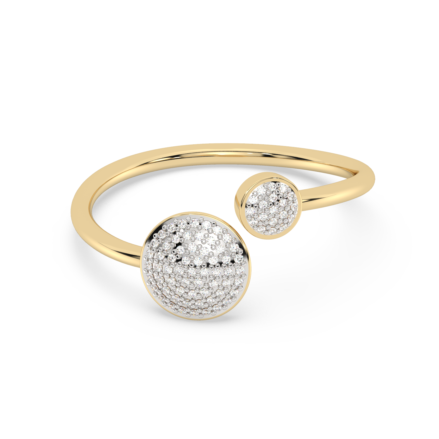 A spectacular open ring that stands out from the crowd. Plated in 14-karat gold, it features a circular embellishment filled with sparkling diamonds.