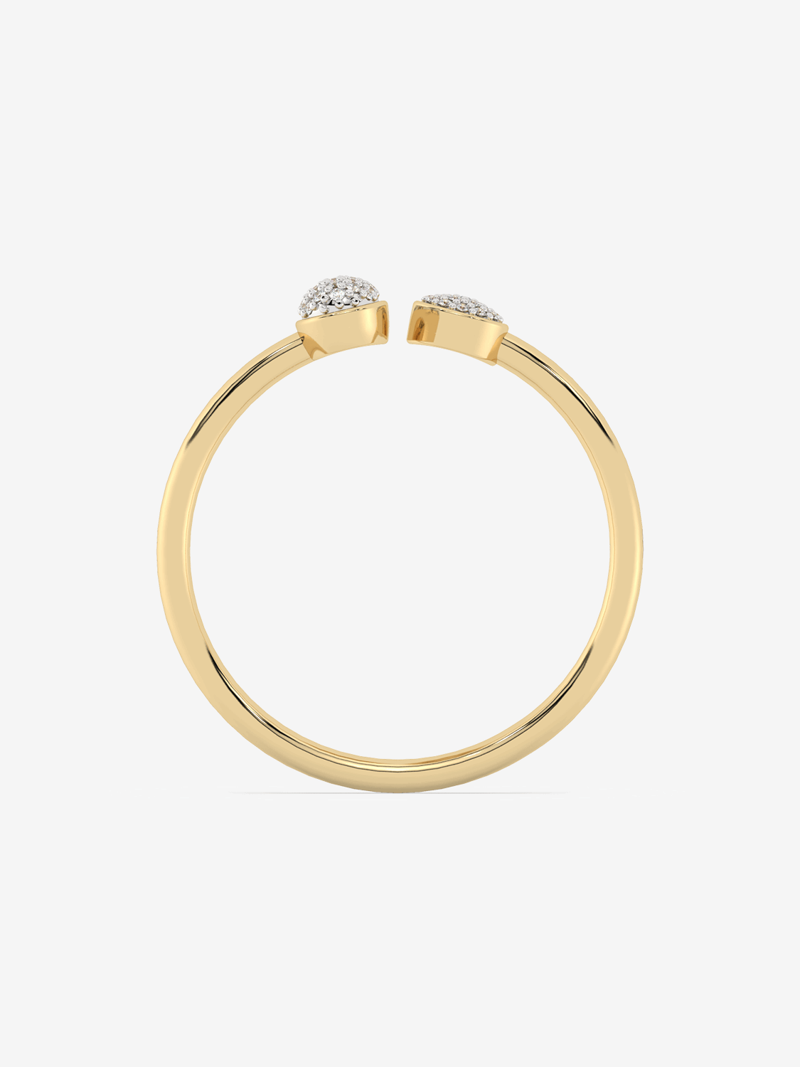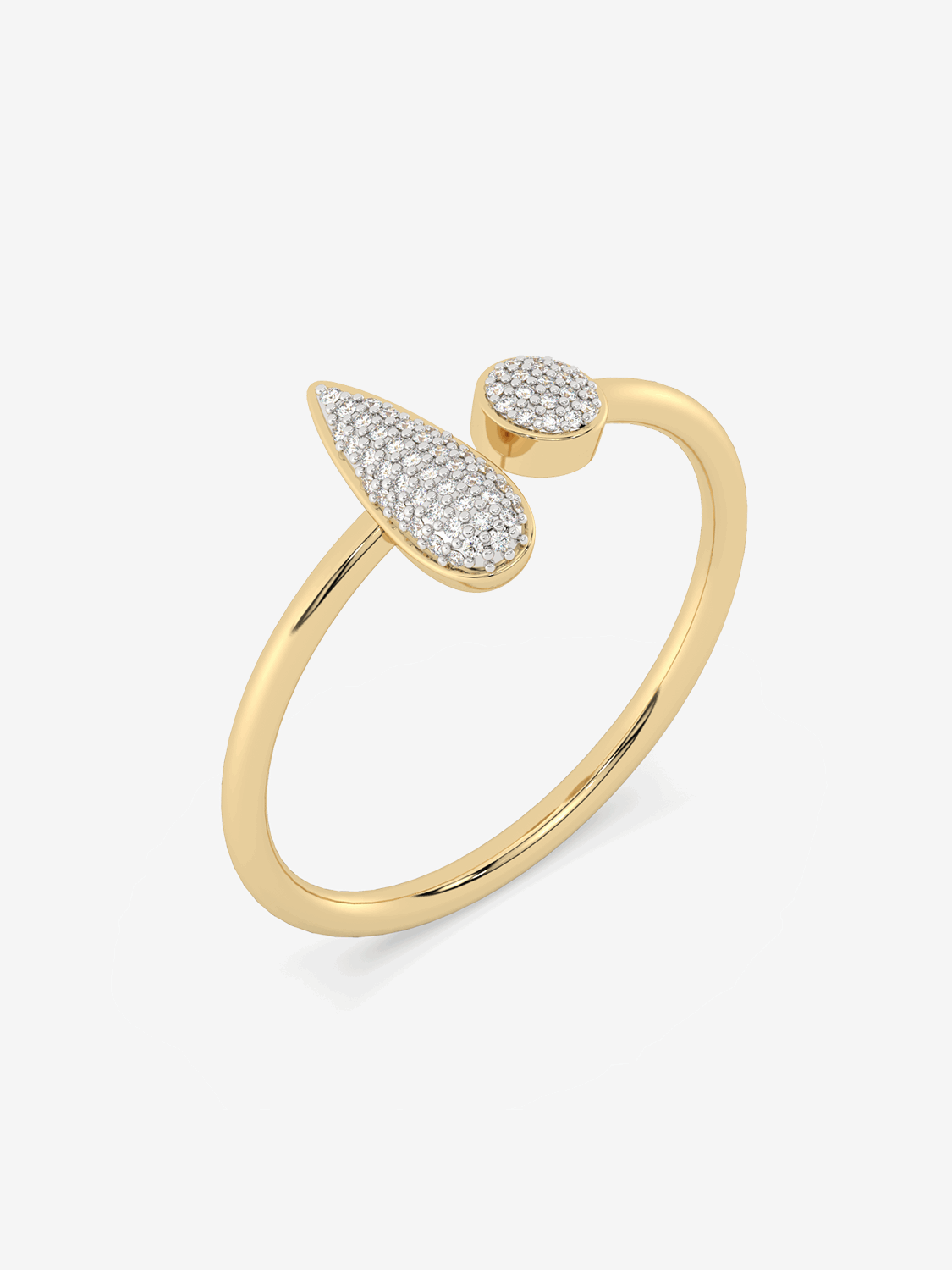 A timeless open ring finished with asymmetrical decorations covered entirely with classic diamonds.