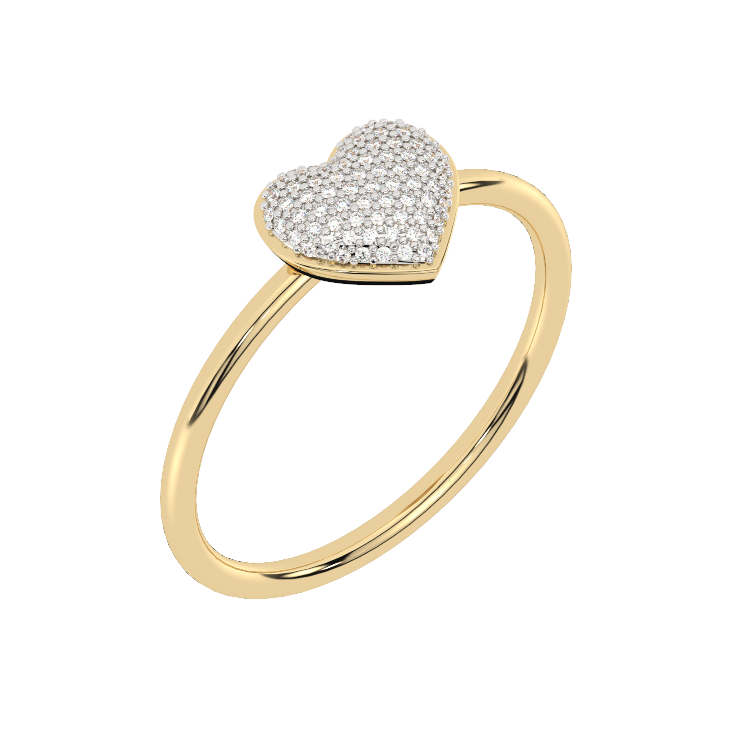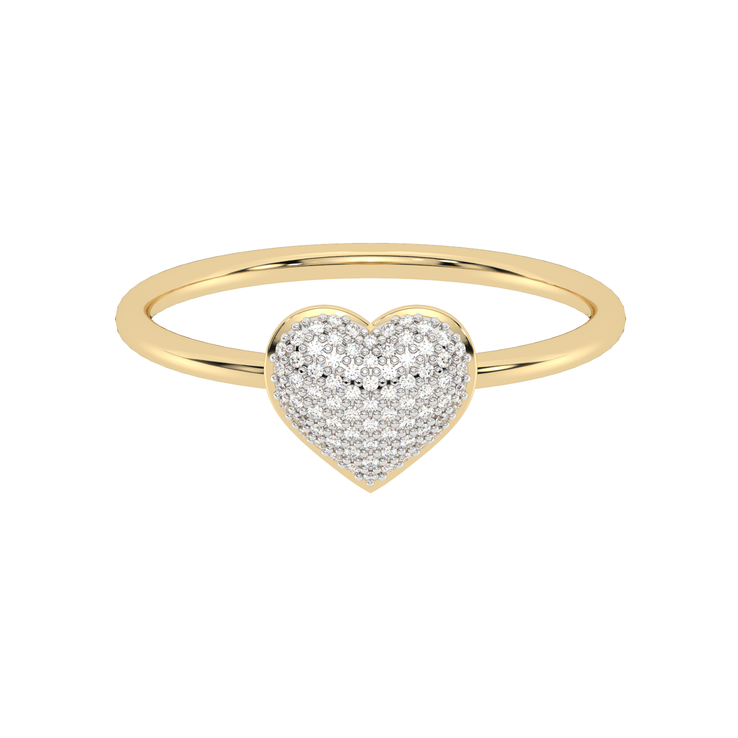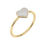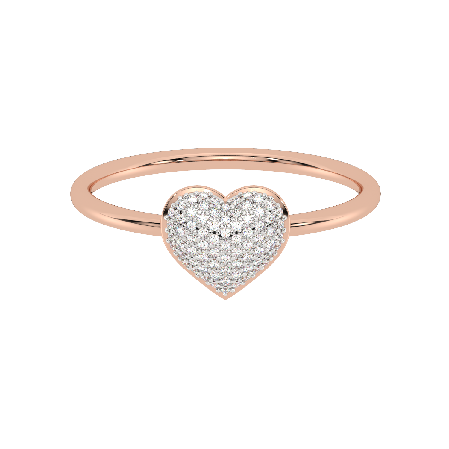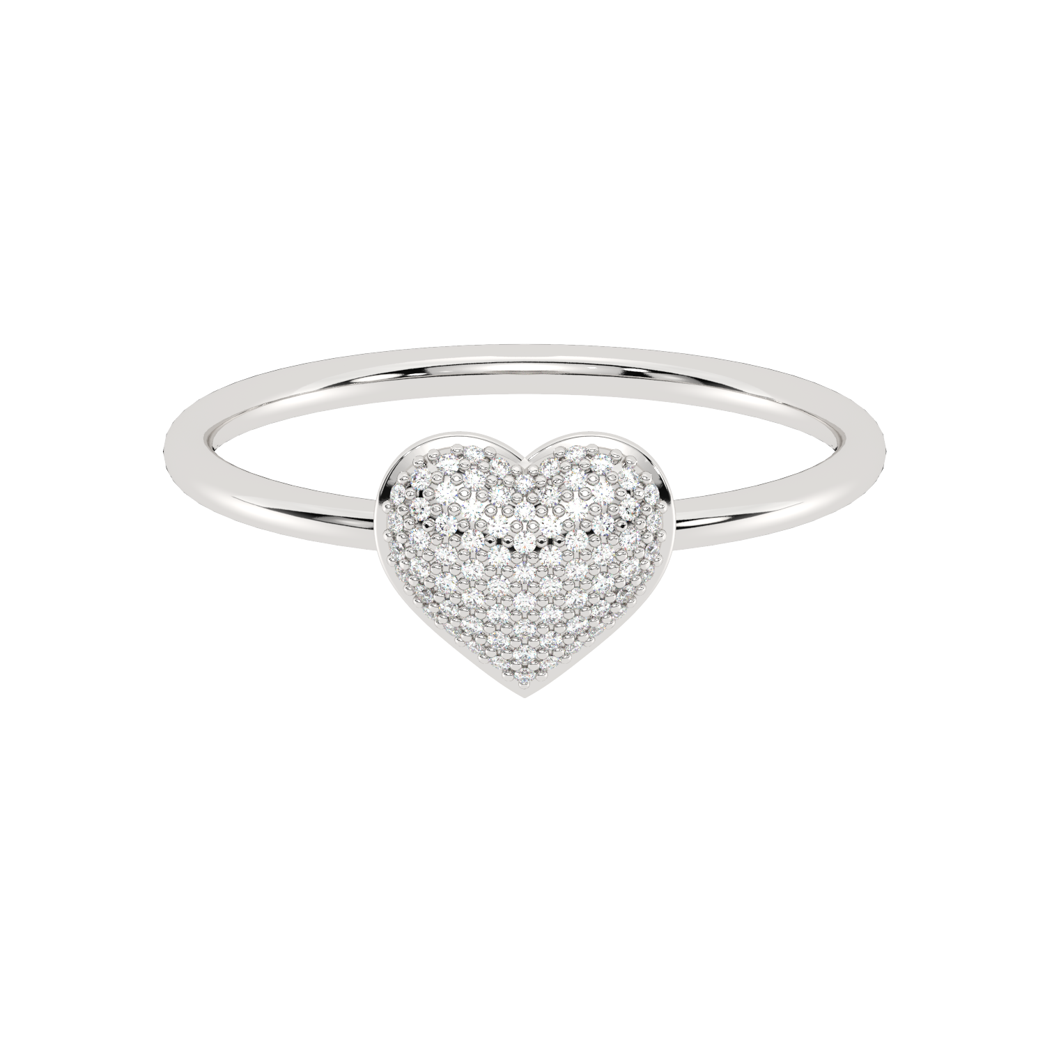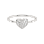 An elegant ring with a central heart motif filled with striking round diamonds.