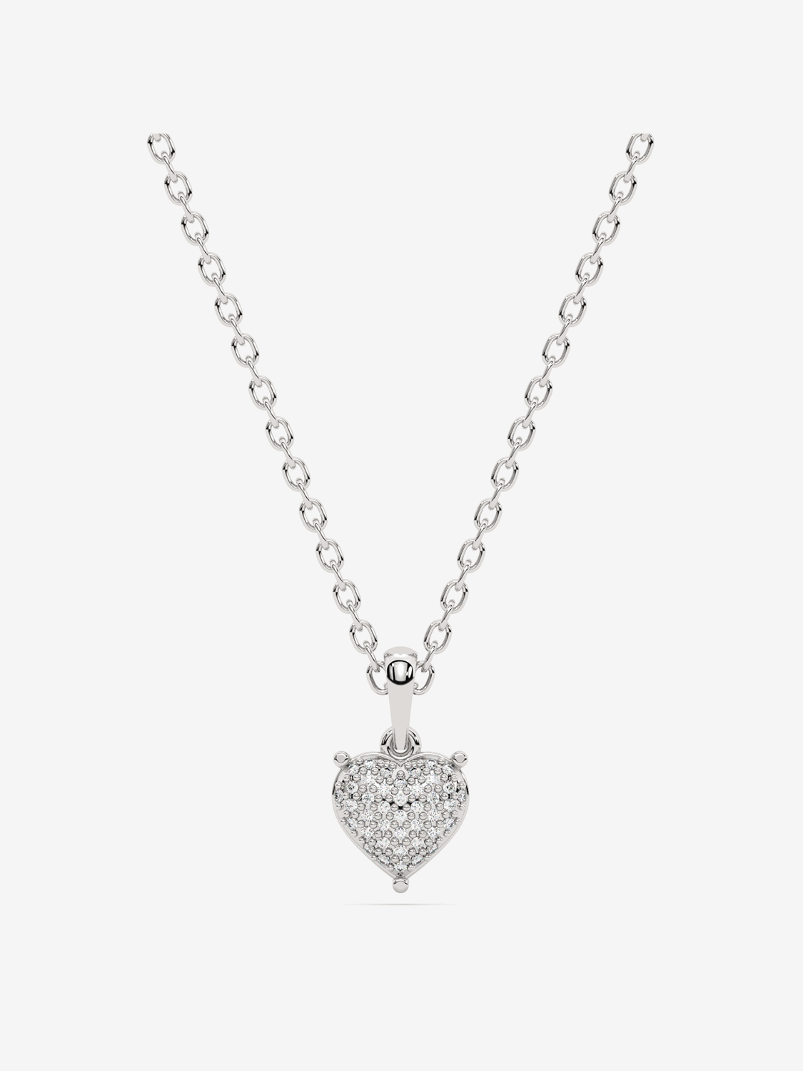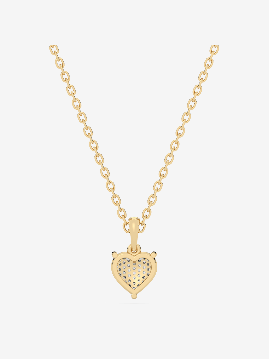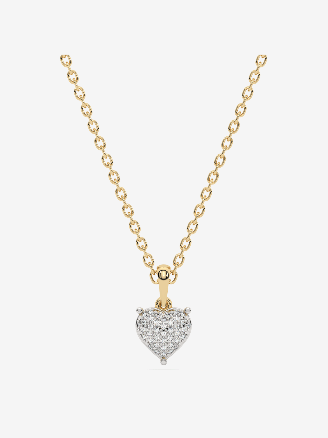 A diamond pendant in the shape of a heart, a talisman of love. The pendant is plated with 14-karat gold and filled with sensual diamonds. Chains sold separately.
