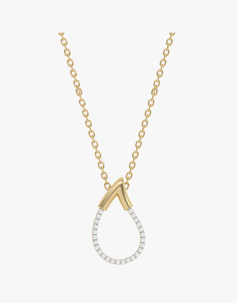 Discover the charm of our gold teardrop pendant, which combines elegance and modern style. The teardrop edge is decorated with small, carefully set white diamonds, which gives it a unique shine. The classic chain fits perfectly with the whole, creating an elegant accessory for any occasion. Chains sold separately.