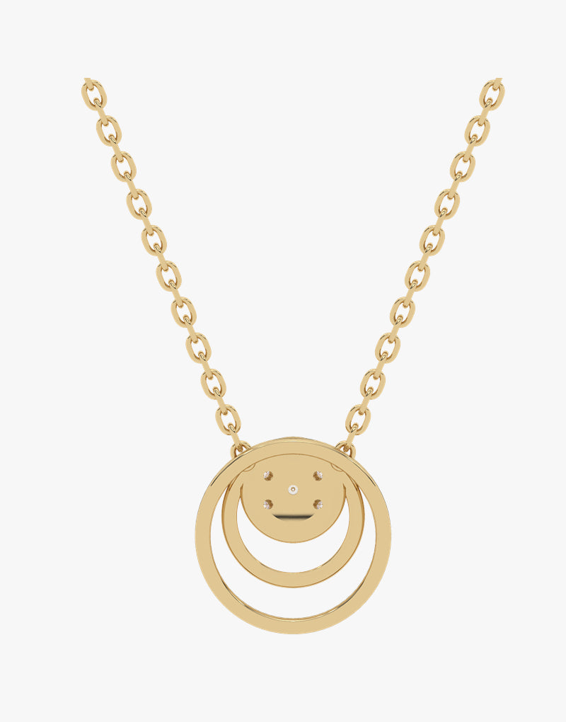 This gold pendant with a central diamond disc is an eye-catcher in elegance and simplicity. Two concentric circles combined with a classic chain create a unique accessory that is perfect for any occasion. Chains sold separately.