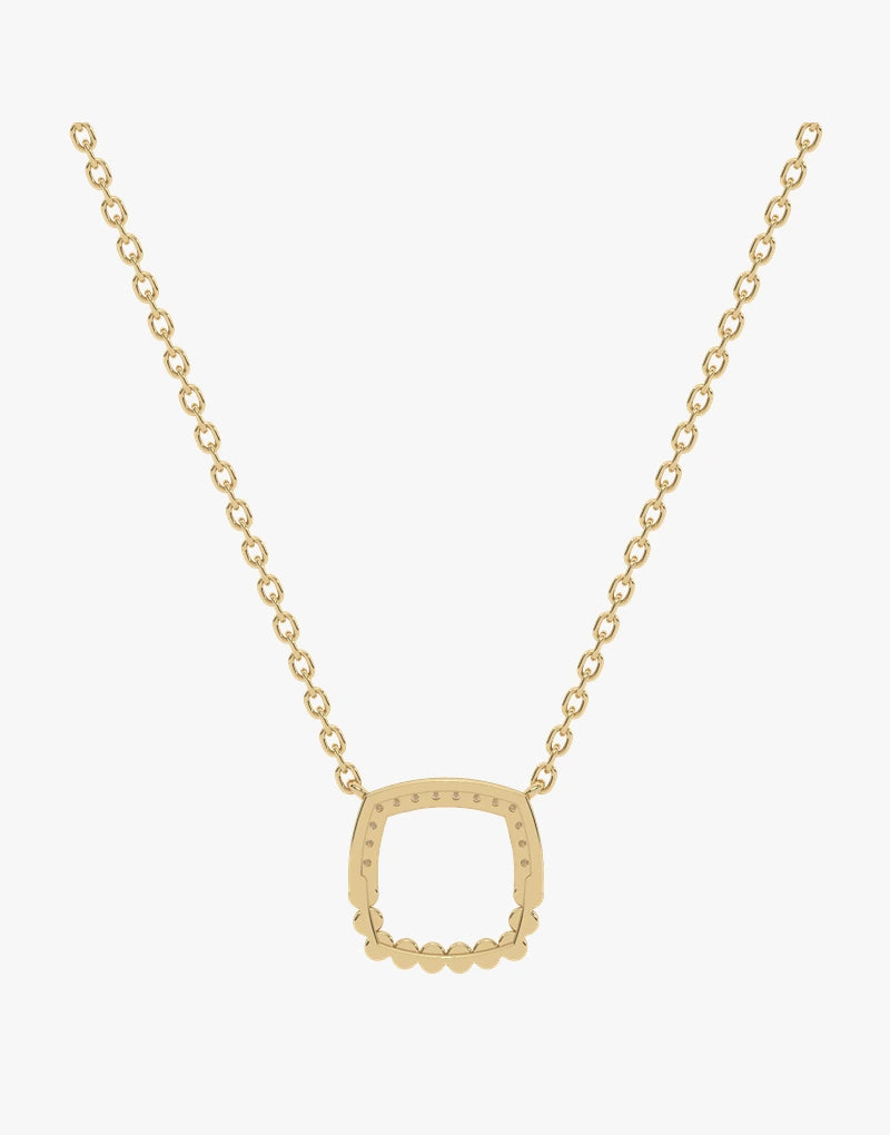 This gold necklace with square diamonds is synonymous with luxury and elegance. 14 single-cut diamonds create a spectacular pattern that beautifully highlights the neckline and adds a sophisticated glow to any style.