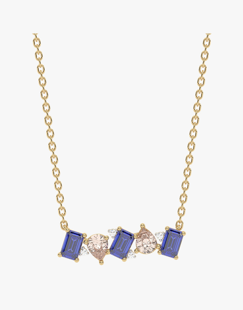 Gold necklace with champagne garnets, tanzanites and diamonds