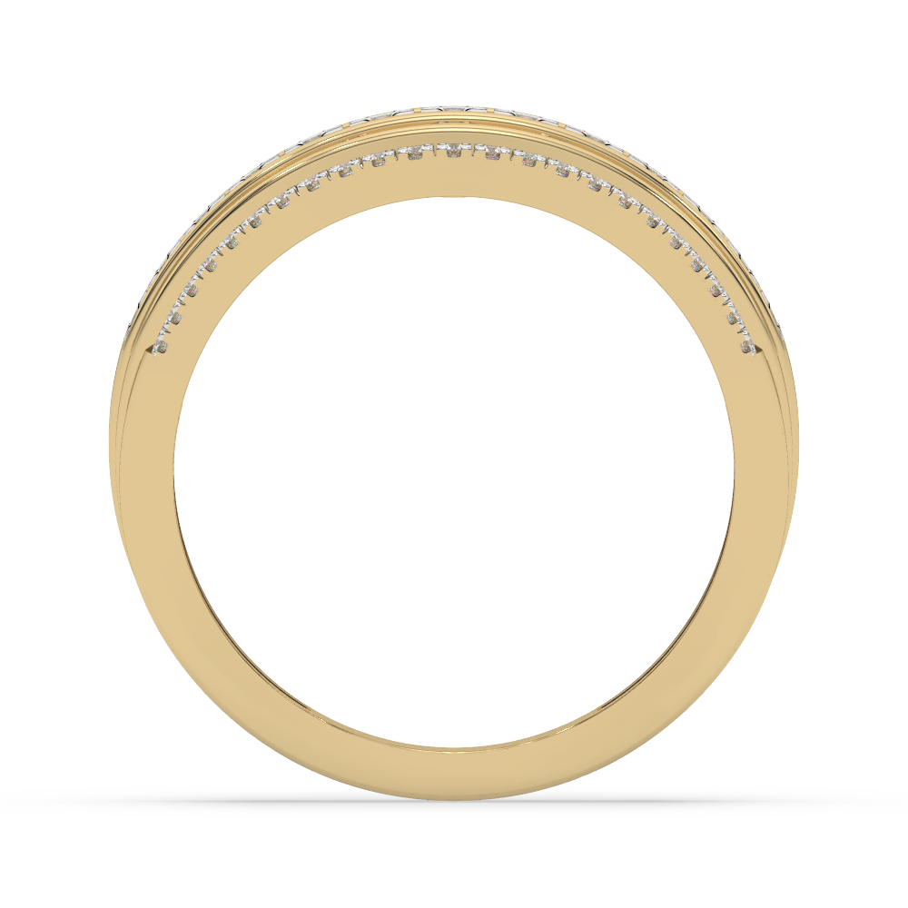 Złoty pierścionek z brylantami z trzema rzędami błyszczących diamentów w eleganckim designie