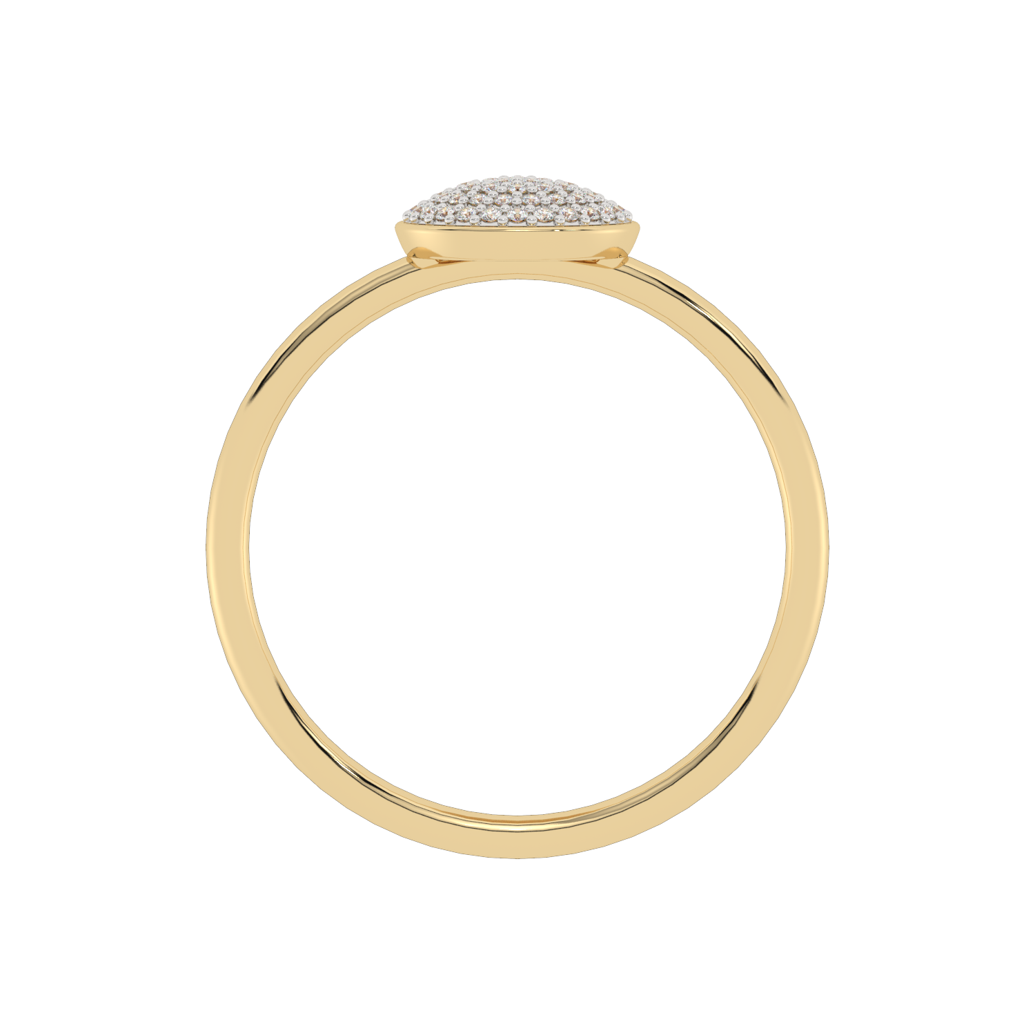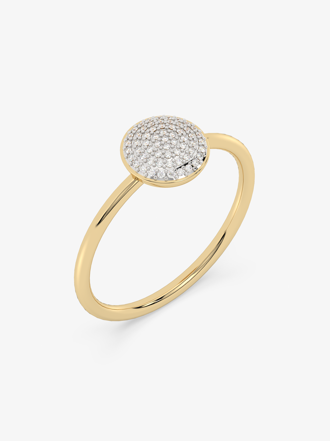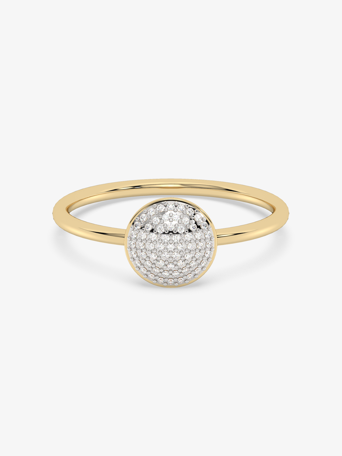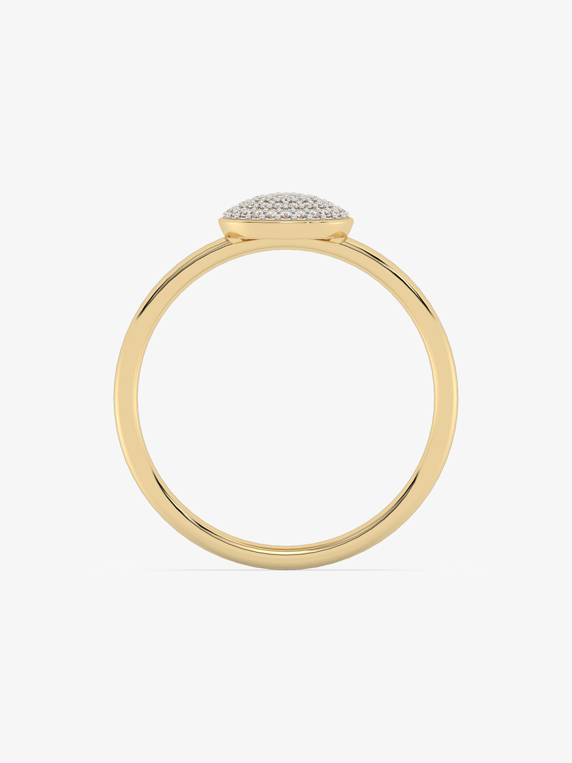A classic gold ring with a round eye filled entirely with sparkling diamonds.